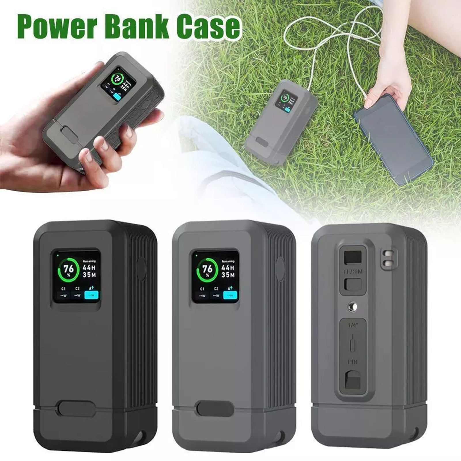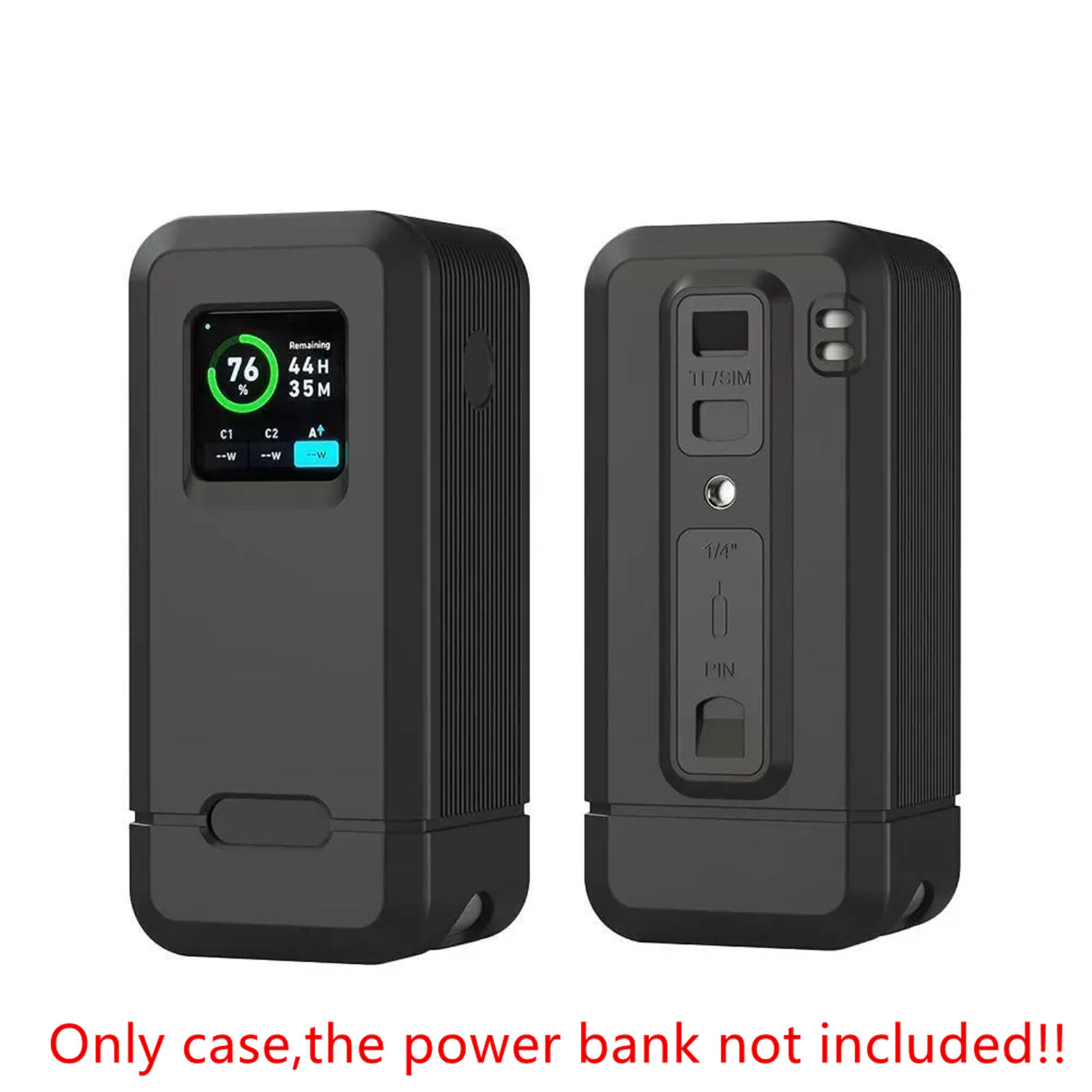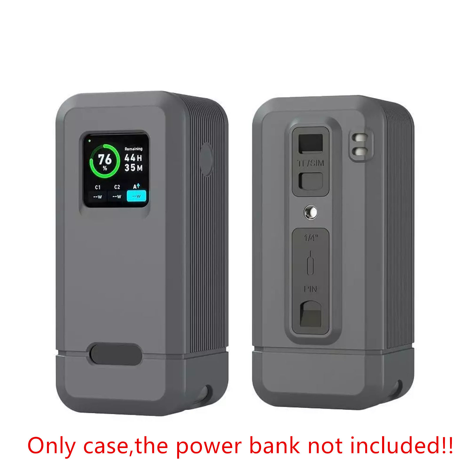 Silicone cover equipped with 1/4-inch screw hole, TF/SM card slot, and SIM pin storage slot. In addition to protecting the power bank and facilitating daily use, it can also be used for camera charging and mounted on a camera tripod. The camera's memory card and other accessories can be conveniently stored.