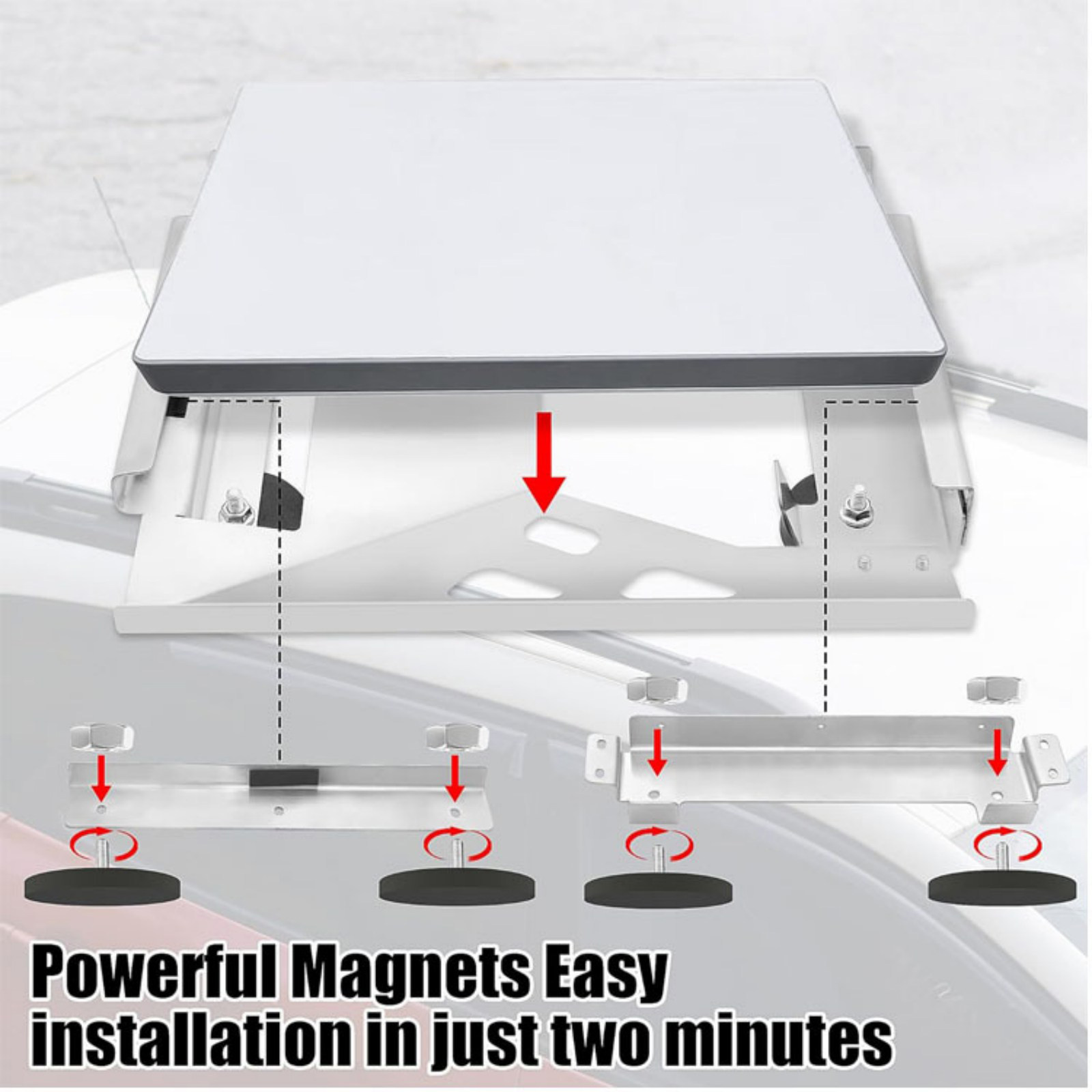 2. No-Punch Installation: For Starlink Mini Magnetic Roof Mount Does Not Require Any Drilling, Assemble The Mount And Gently Place It On The Roof, Iron Roof Or Iron Shelf Surface To Create A Temporary Or Permanent Fixing Point