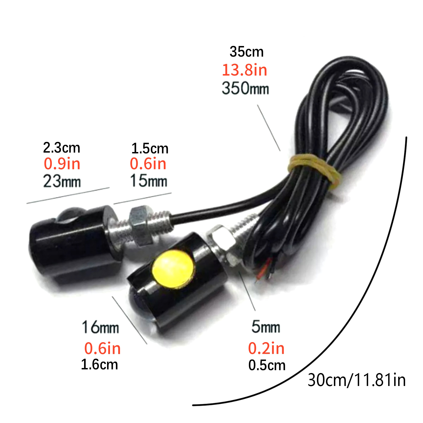 3. Turn Signal Specifications: The Voltage Of The Motorcycle Turn Signal Lights Is 12V, The Current Is 0.25A, The Color Temperature Is 6500k. Each Of Our Scooter Turn Signal Lights Housings Is Made Of Premium Aluminium, Which Can Withstand Various Adverse Weather Conditions.