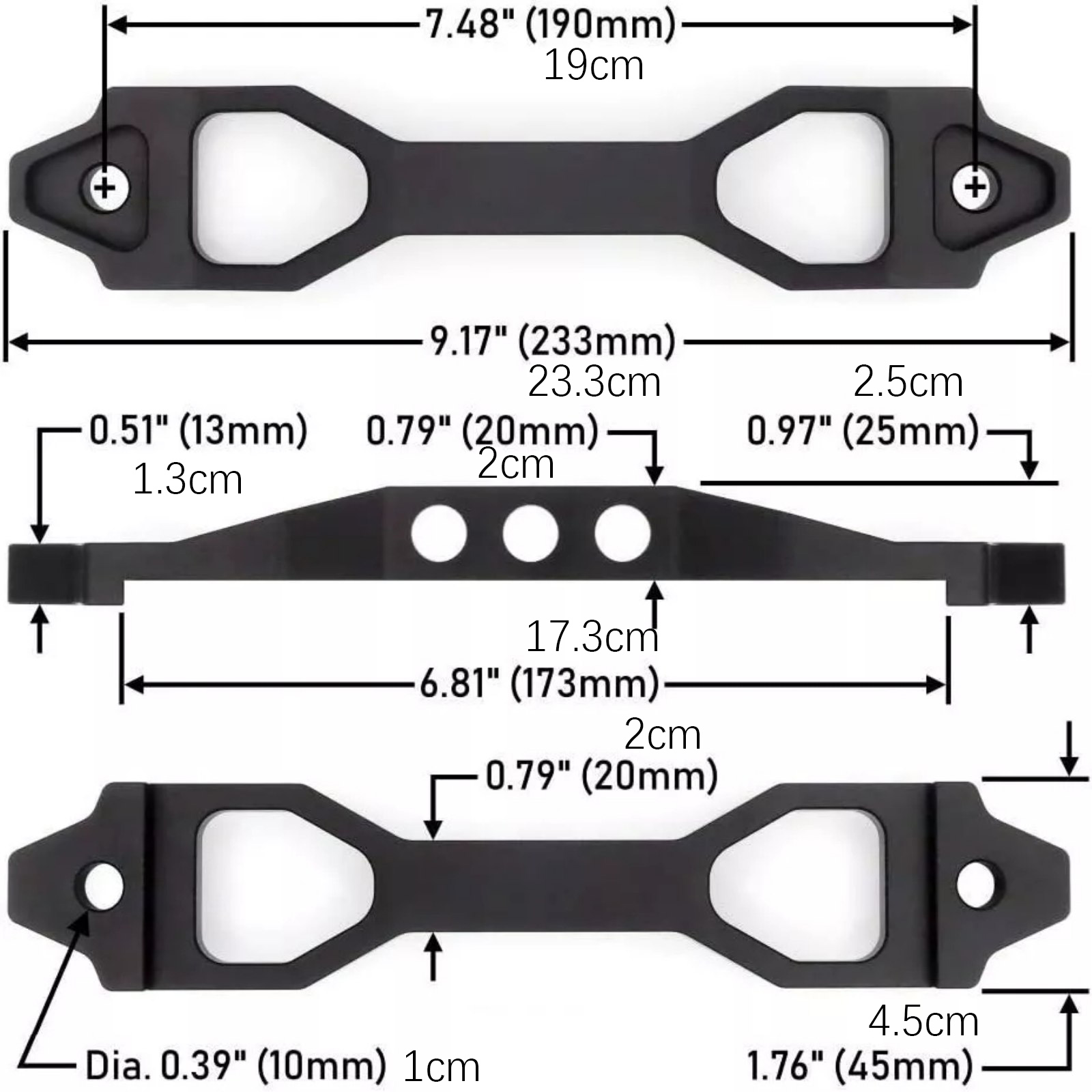 3. Product Size: The Total Length Of The Battery Tie Down Bracket Is 233 Mm (9.17"), The Distance Between The Bolt Centres 190 Mm (7.48") And The Length Of The Bolt Is 250 Mm (10"). For Bolts That Are Too Long, The Hooks Can Be Cut Appropriately.