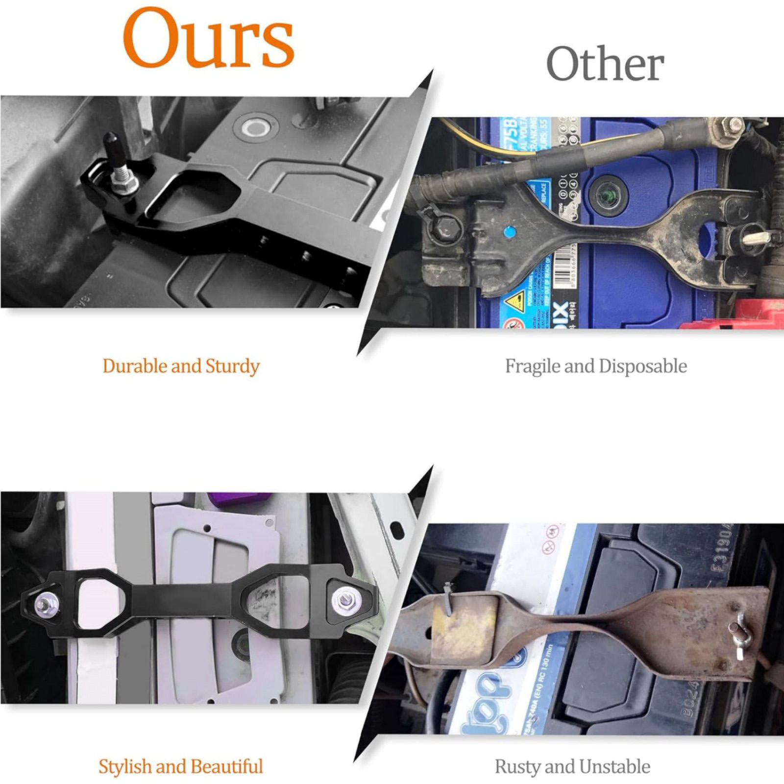 2. Sturdy And Burable: The Battery Hold Down Is Made Of High-Quality Aluminum Alloy, Which Is Sturdy, Rust Proof, And Antioxidant. Excellent Spraying Technology Makes Its Surface Smoother And Cleaner. Enhance Corrosion Resistance And Rust Prevention. The Matching Bolts Are Made Of High-Quality Stainless Steel, Durable, Sturdy, And Can Be Used For A Long Time.