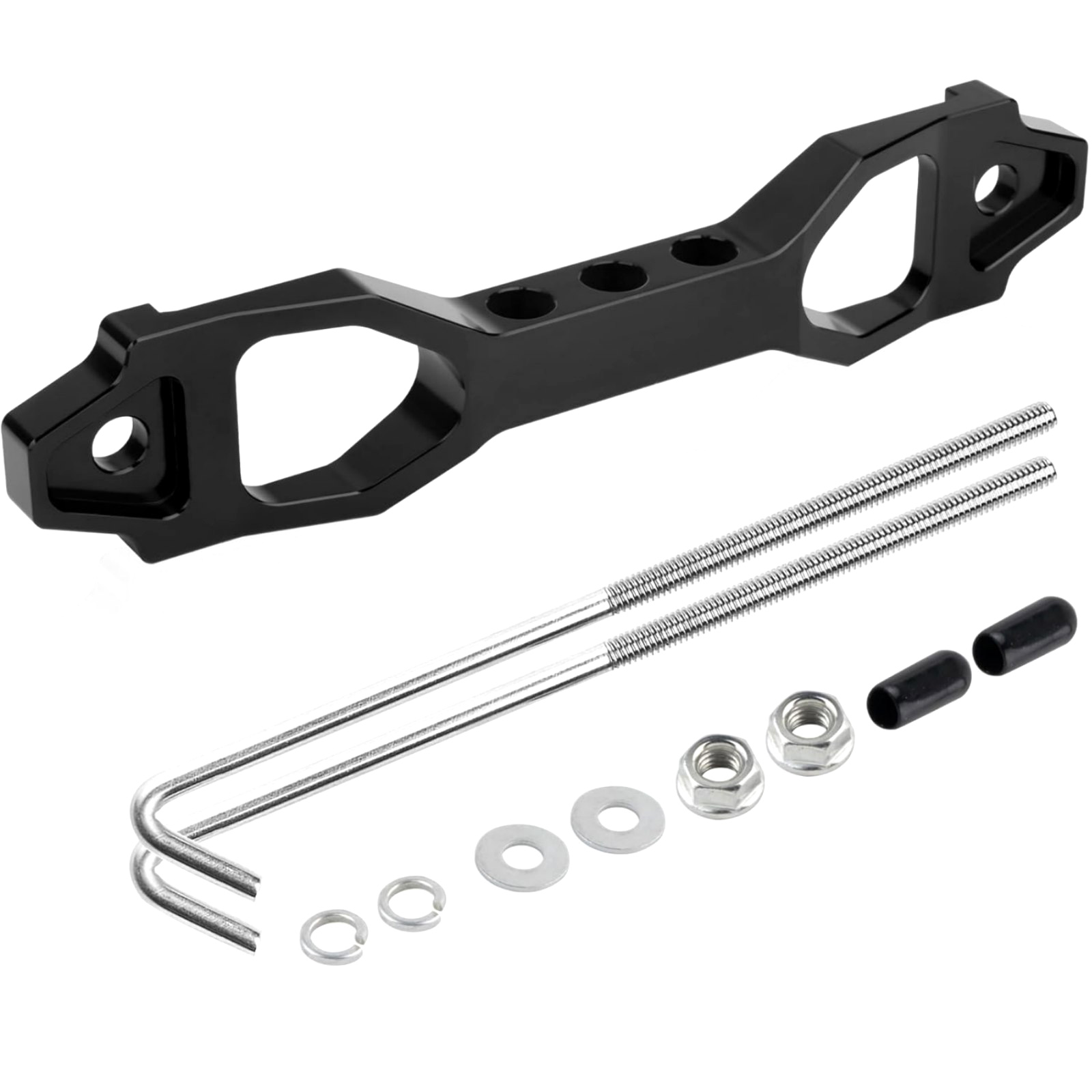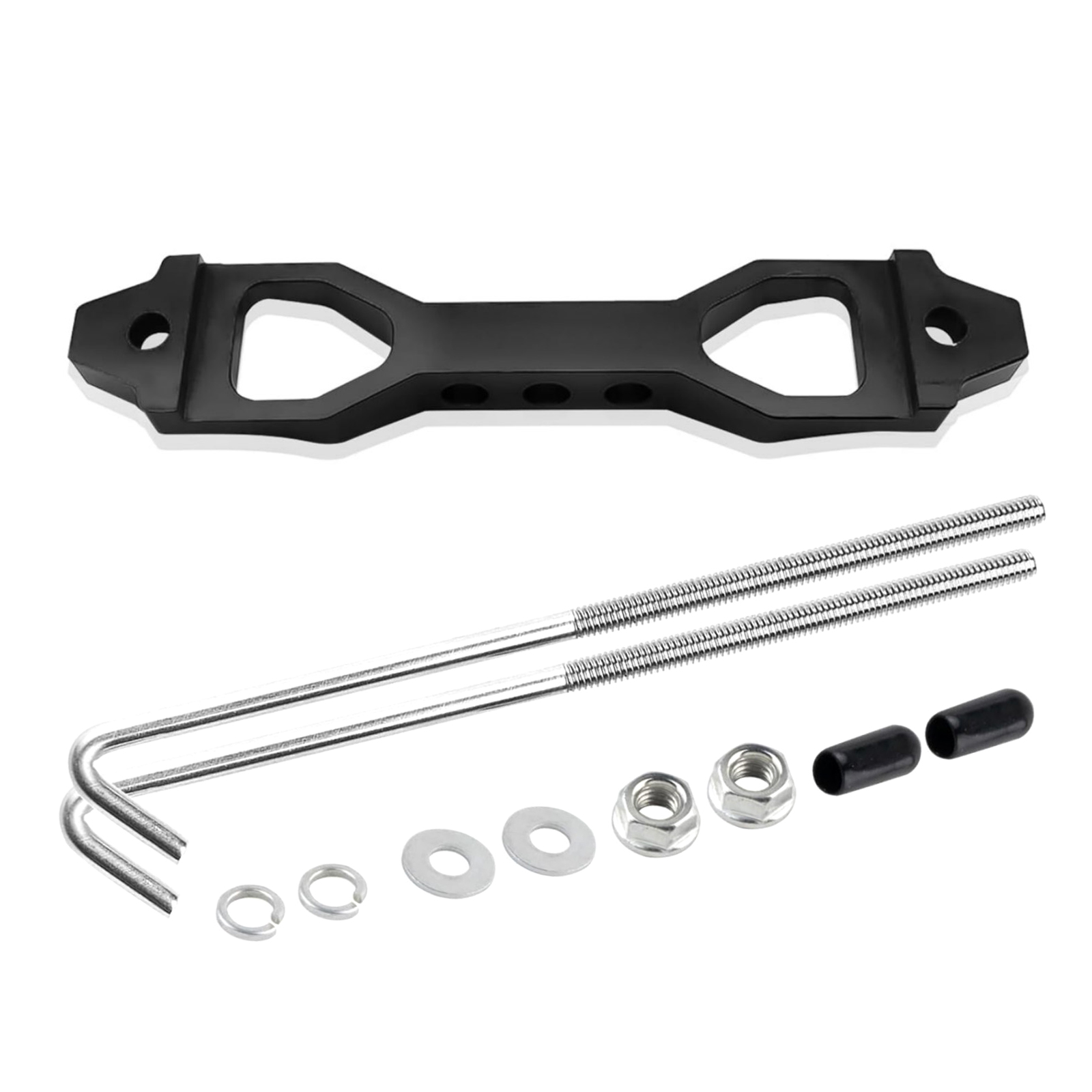 1. Battery Hold Down Set: The Battery Hold Down Kit Includes 1 Battery Mounting Bracket, 2 Pcs 10 Inch J-Shaped Hooks, And Set Of Accessories. Own The Battery Hold Down Bracket, Keeping Your Battery In Its Original Position Under Any Driving Conditions.
