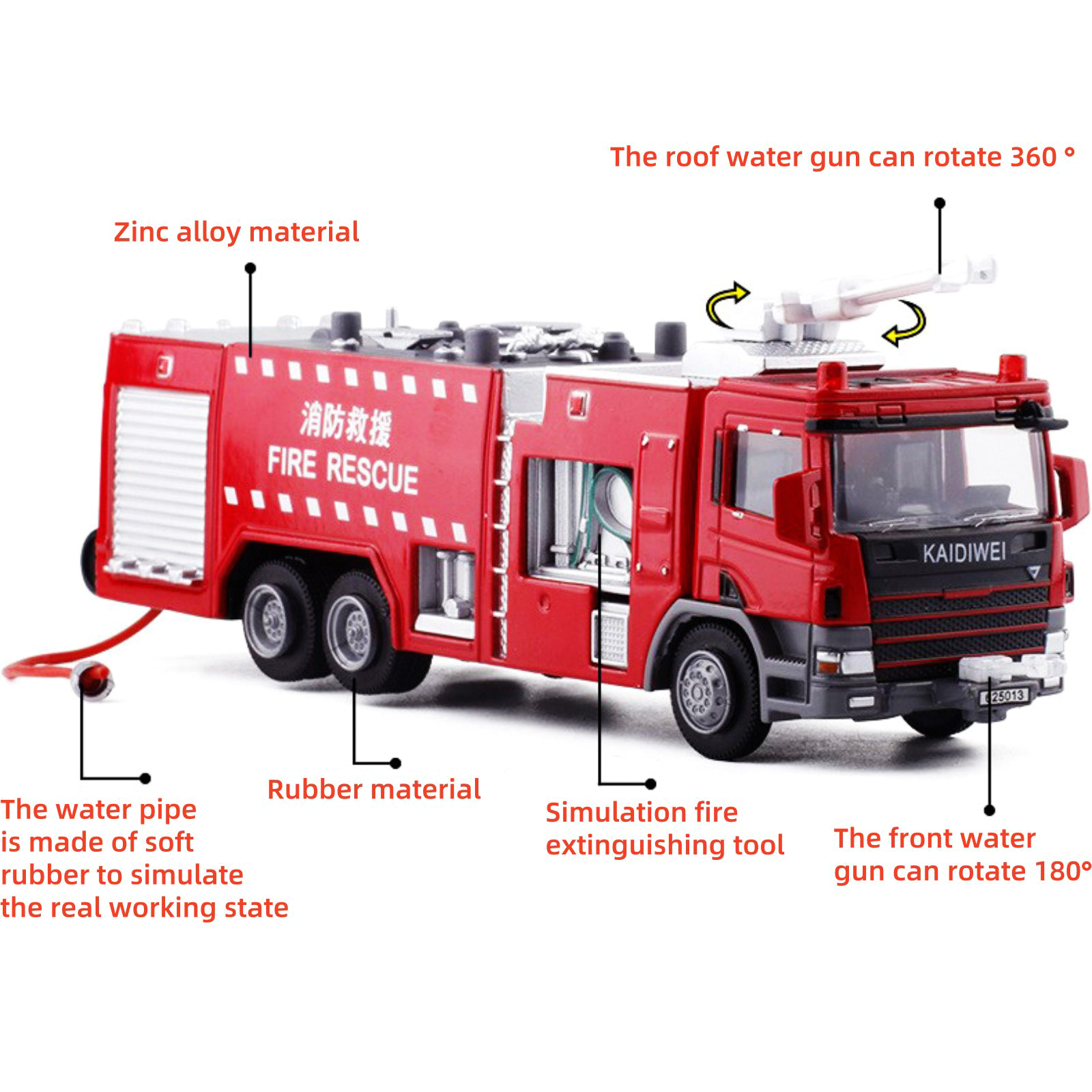 2. Collection Vehicle: For KDW Water Tank Truck Rescue Fire Police Vehicle Model 1:50 Scale Model Length Is 6.3in