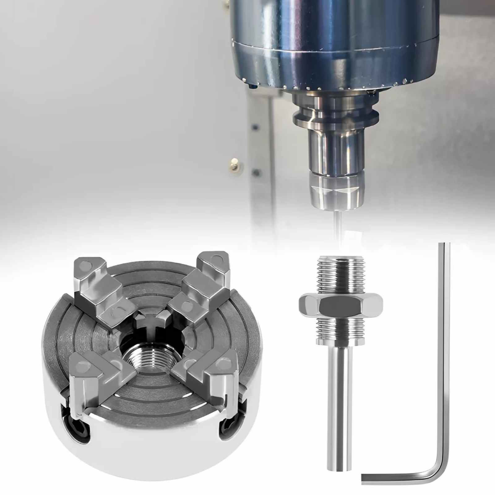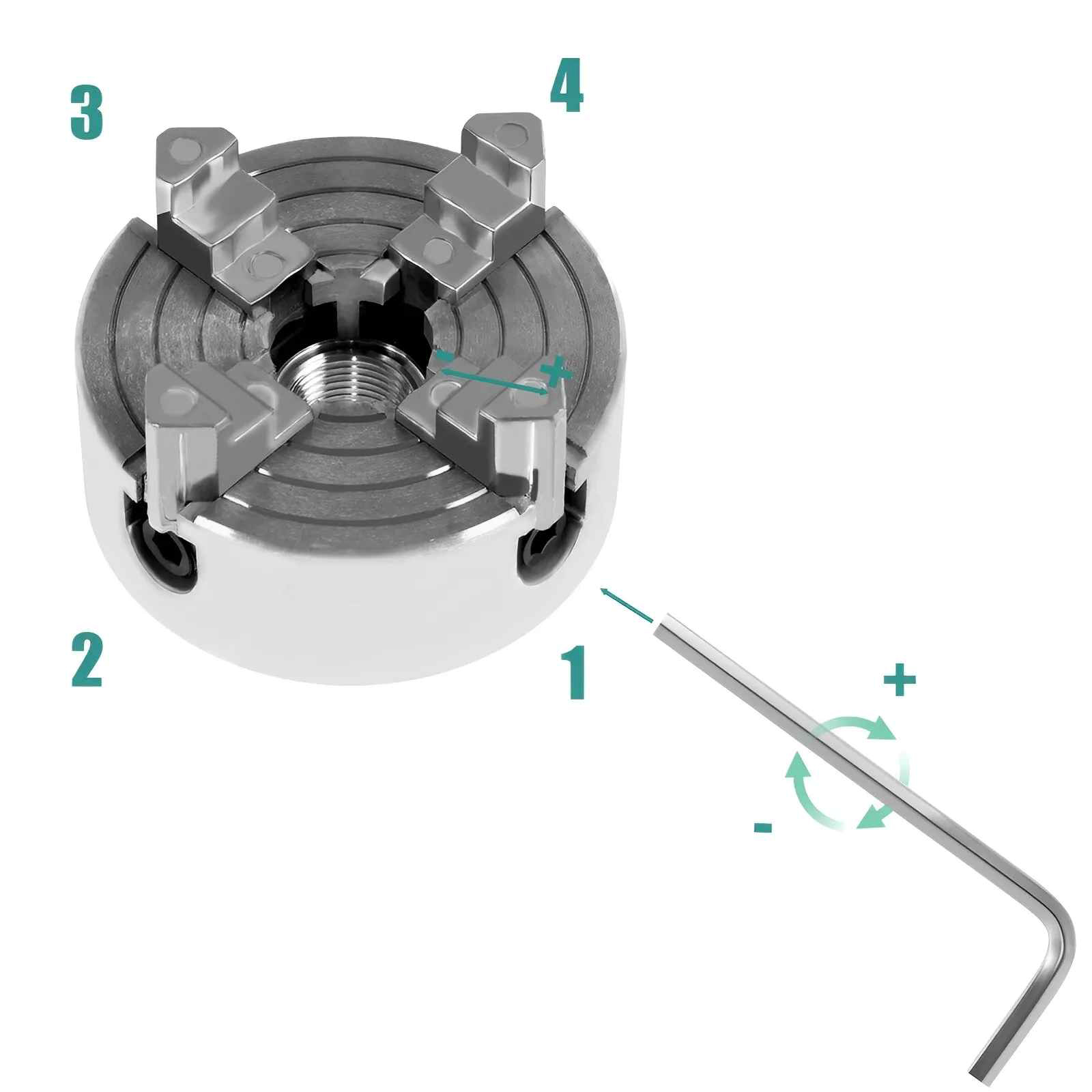 4-Jaw Self-Centering, Effortless Operation: Featuring an advanced 4-jaw self-centering design, this chuck automatically aligns workpieces with precision, eliminating the need for manual adjustments. Its user-friendly interface ensures quick and easy setup, appealing to both beginners and experienced craftsmen alike, enhancing the joy and satisfaction of woodworking.