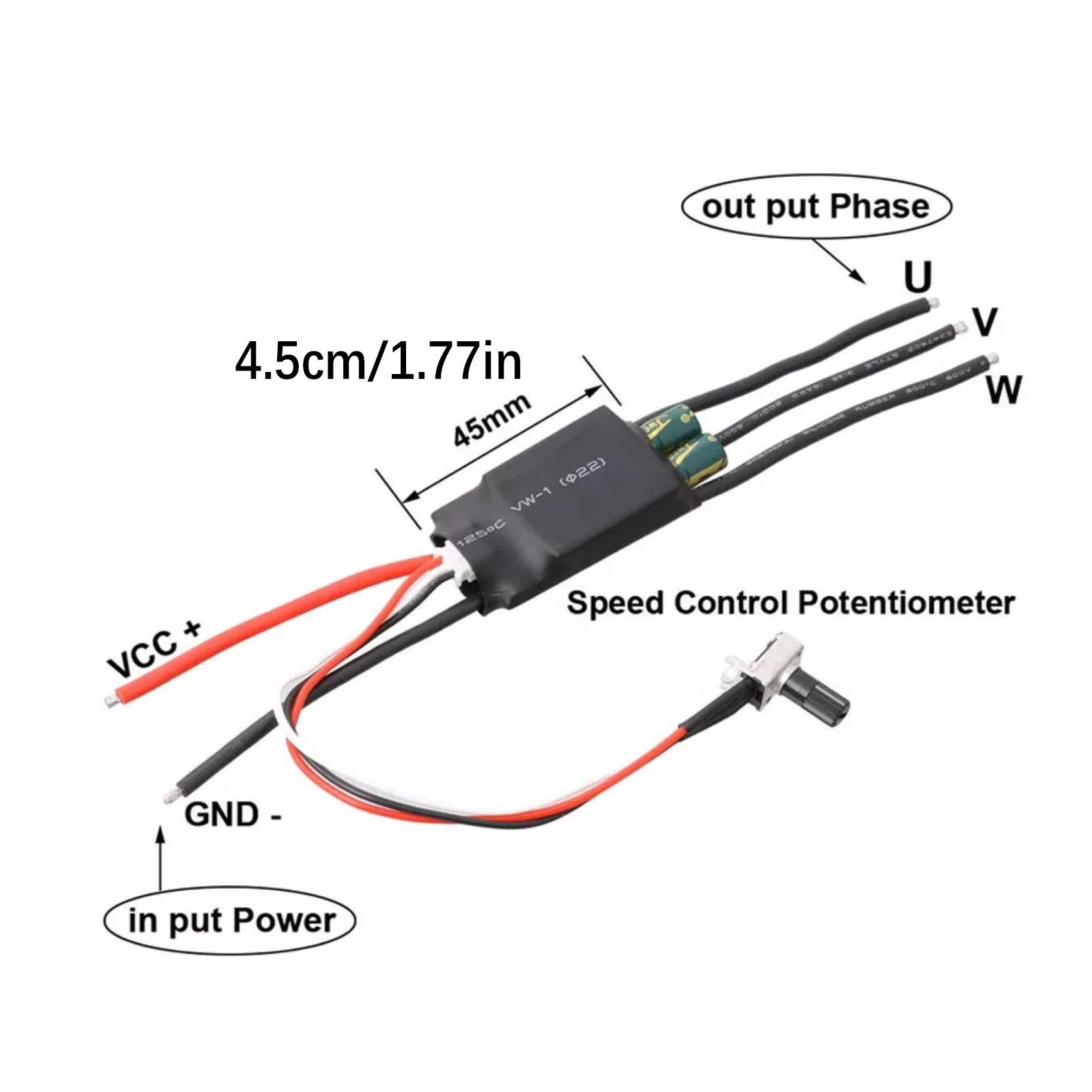 Flexible Speed Control: Equipped with a standard potentiometer, this product allows users to achieve stepless speed regulation simply by rotating the potentiometer. Clockwise rotation increases speed, while counterclockwise rotation decreases it, providing an intuitive and uncomplicated operation to meet various speed requirements in different work scenarios.
