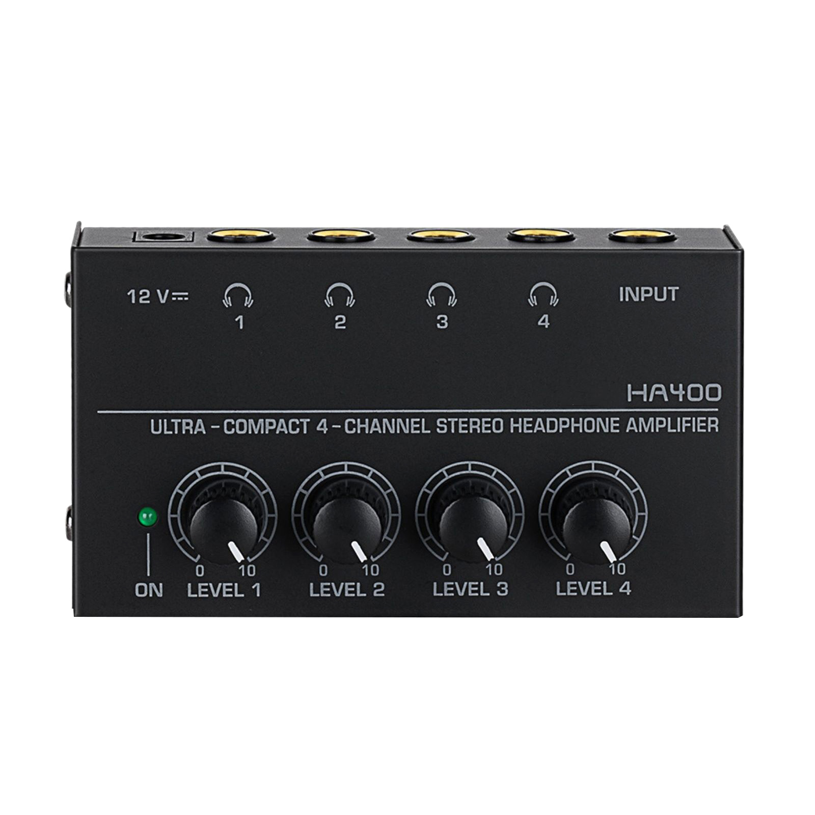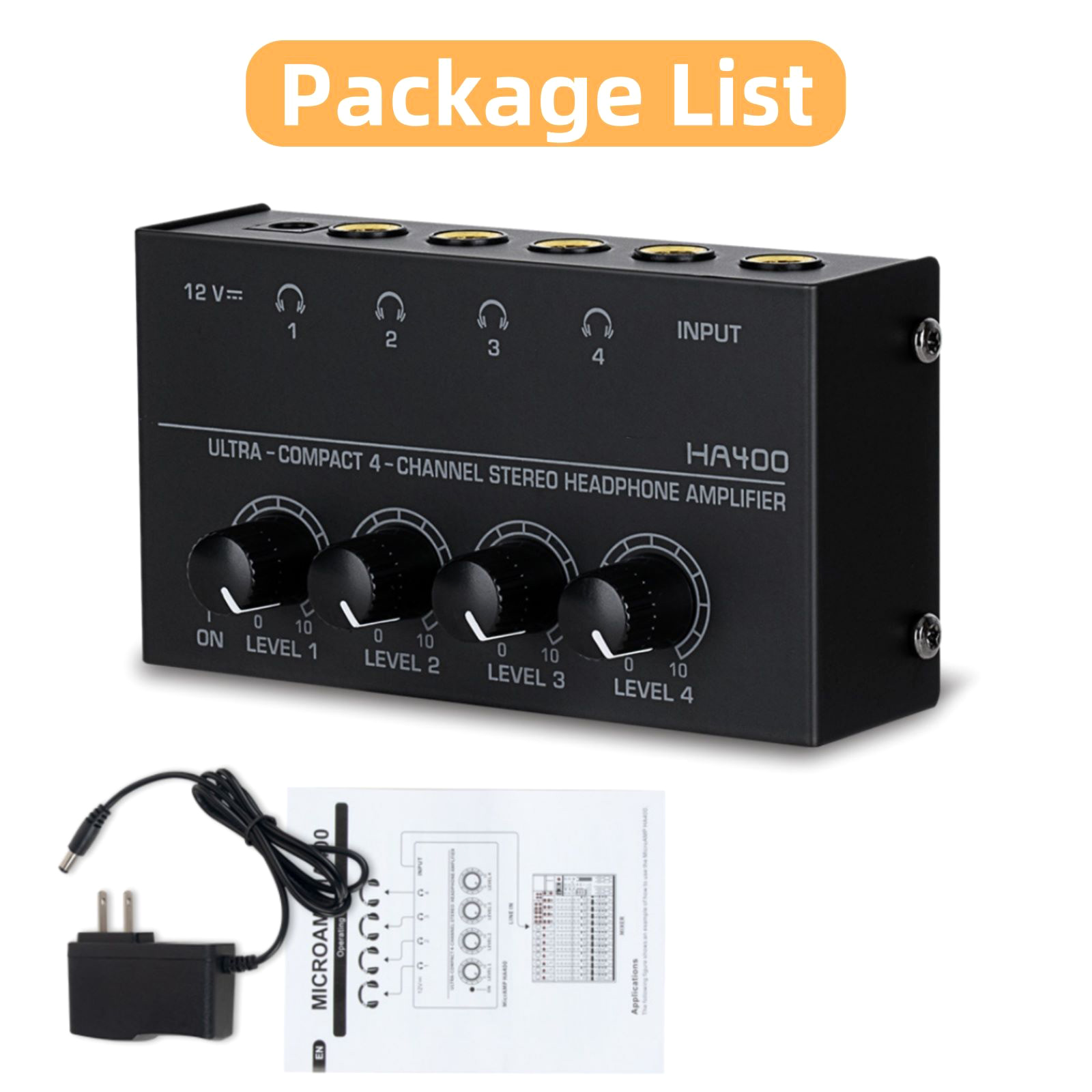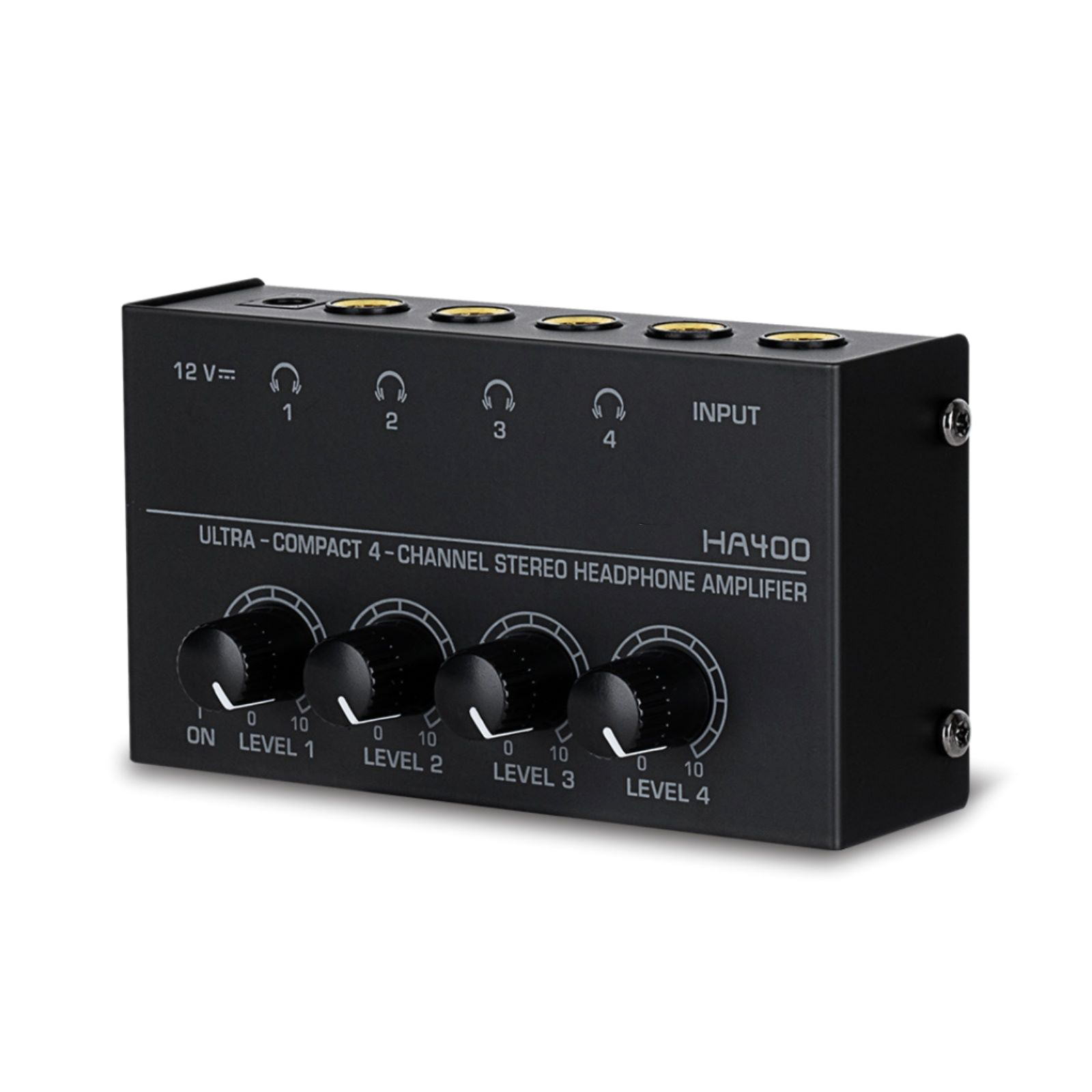 Quad Independent Outputs: Features four headphone output channels, each with independent volume control, allowing multiple listeners to enjoy personalized audio levels.