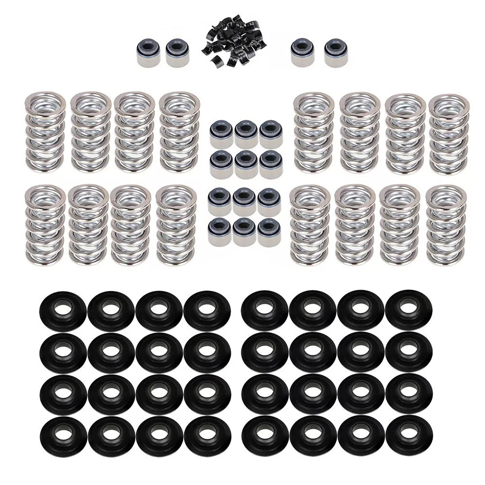 Complete Kit includes dual valve springs, locks and the following: Chromoly Steel Retainers, Locators for stock Guides (.505" ID/.060" Thick), Blue or black valve seals, Valve locks.