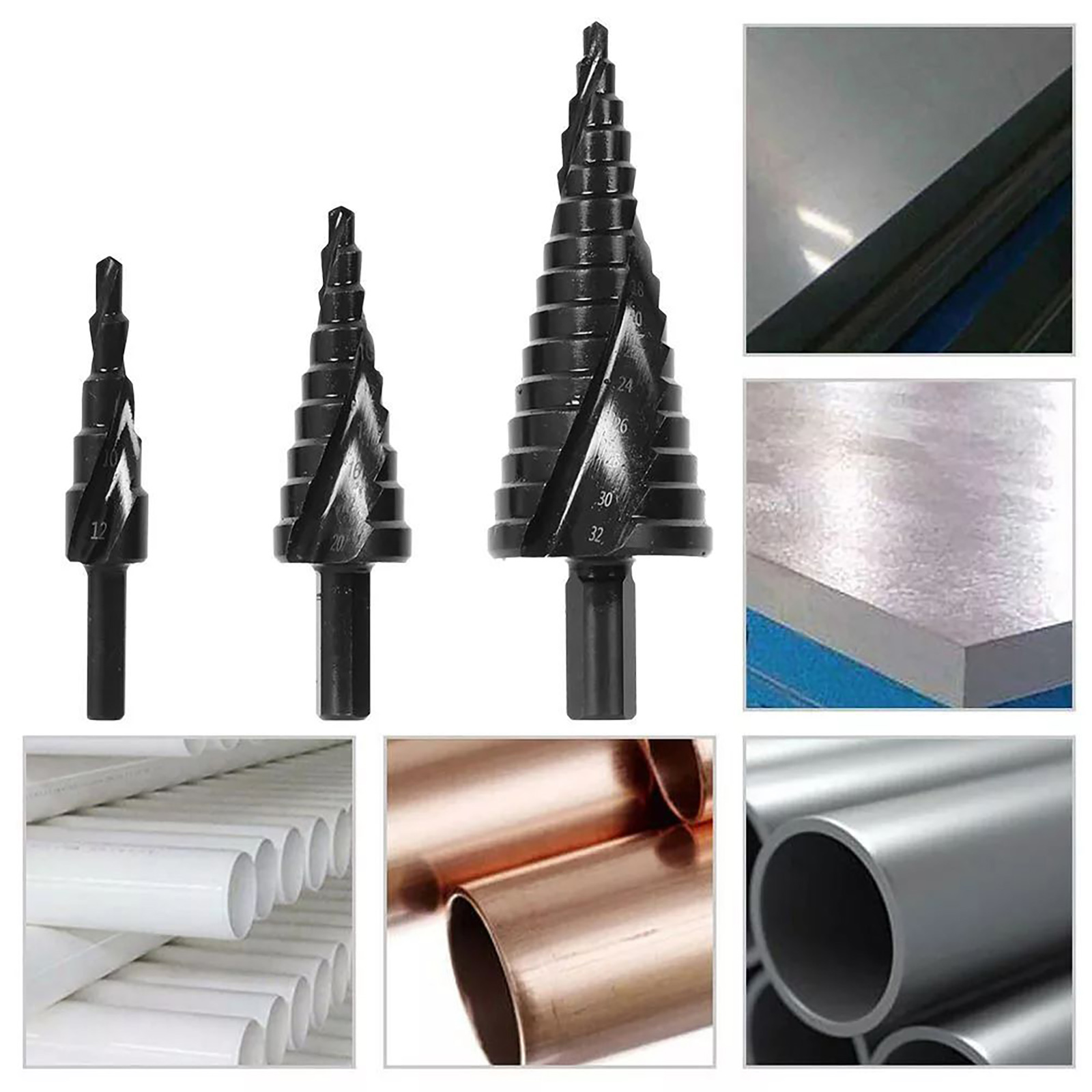 3 x Spiral Step Drill Bit