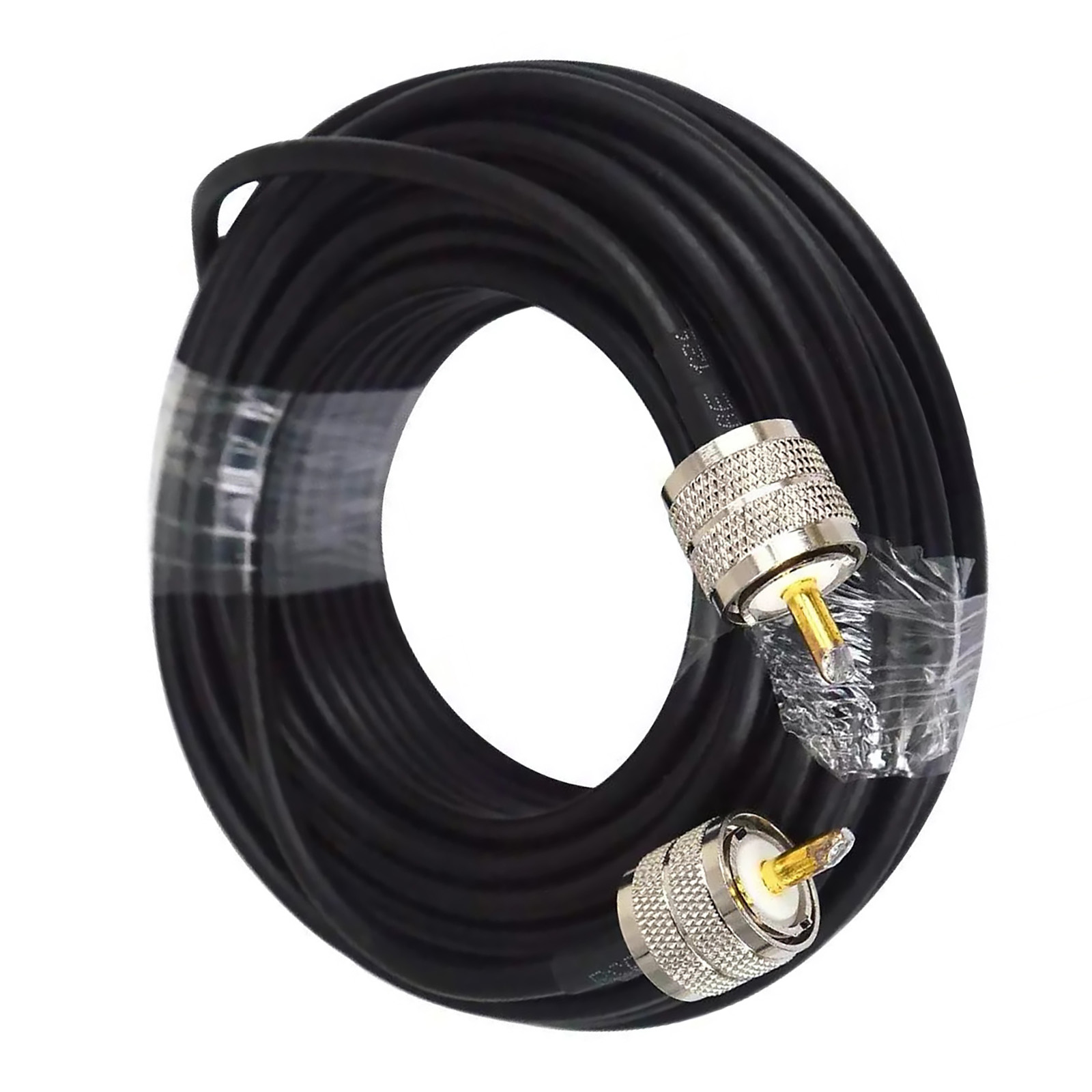 Material: Stranded bare copper center conductor low loss coax cable, aluminum foil and bare copper braid shields, fully molded nickel plated brass connectors.