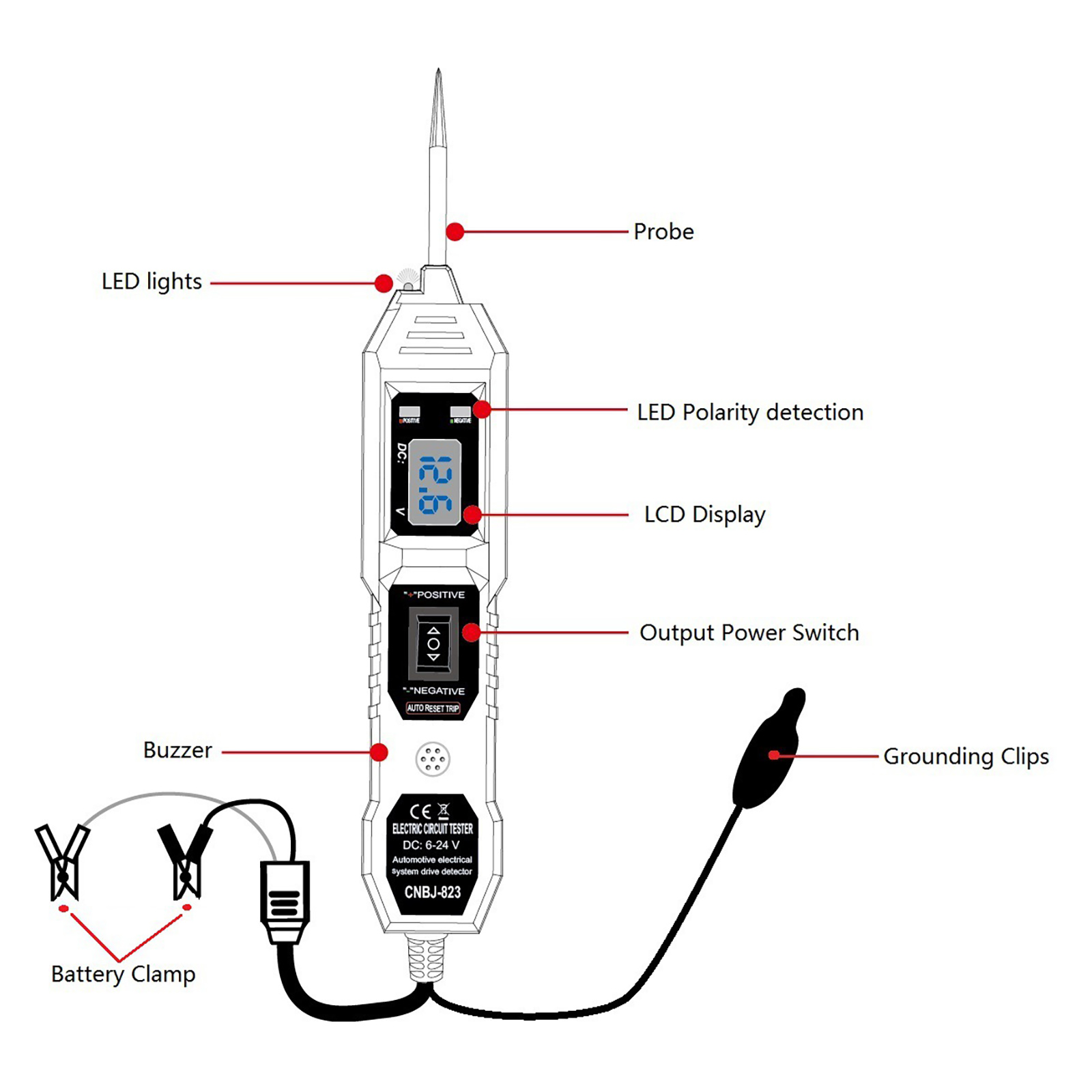 Multi-features: Component flexibility voltage detection. diode detection. continuity testing. ground detection. tracking to locate short circuits. Positive and negative detection. Overload protection lighting sound alert.