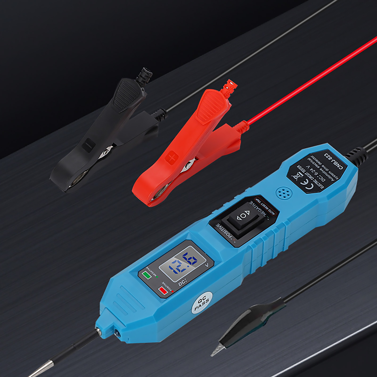 LCD High Definition Display: When the probe detects a positive pole or performs a positive activation, the front red LED lights up with a blue LCD voltage display. When the probe detects a negative terminal or performs a reverse activation, the front green LED lights up with a blue LCD voltage display.