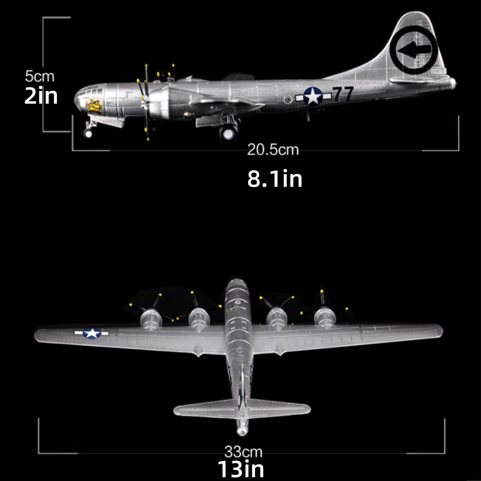 2. Collection Plane: WWII US Air Force B-29 Superfortress Bomber Model Airplane 1:144 Scale Model Length Is 8.1in