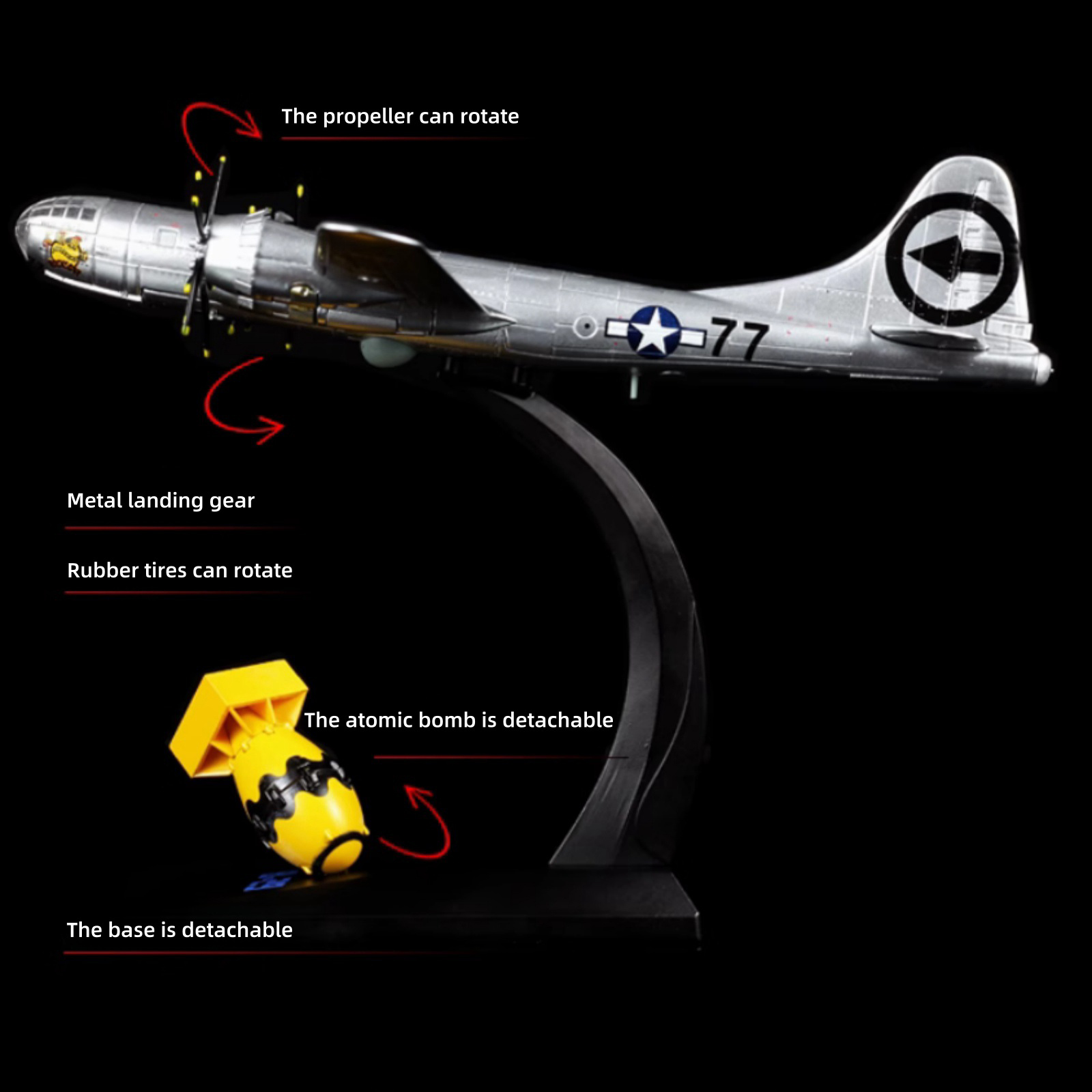 The B-29 Bomber Is An American Propeller Type Strategic Bomber. The B-29 Bomber Is A Flat Wing Four Engine Aerodynamic Layout, Named After The B-17 Bomber. It Was The Main Bomber Of The Us Army Air Forces In The Asian Theater Of World War II And The Largest Aircraft In The Air Forces Of Various Countries At That Time. This Aircraft Is Mainly Used For Strategic Bombing And Long-Range Bombing Missions, And Can Also Be Used As An Anti Submarine, Reconnaissance, And Aerial Refueling Aircraft. It Utilizes Advanced Technologies At The Time, Such As Cabin Pressurization, Front Three-Point Landing Gear, High Wing Loading, And Remote-Controlled Machine Gun Turret. The B-29 Bomber Was Developed By For Boeing In 1940 And Made Its Maiden Flight On September 21, 1942. In August 1945, It Dropped Atomic Bombs On Hiroshima And Nagasaki In Japan. After World War II, It Continued To Serve In The United States Air Force For A Long Time Until It Was Fully Retired In The Early 1960s. The B-29 Bomber Changed The Way Humans Wage War, And There Is No Bomber In The Arsenal Of Human History That Can Match It. During World War II, The Us Military Did Not Land A Single Soldier On Japanese Soil, But Instead Made Japan Bow Down And Submit. The Fire Attack And Air Drop Of Atomic Bombs Launched By B-29 Not Only Completely Destroyed Japan' S War Potential, But Also Undermined Japan' S Resistance Determination.