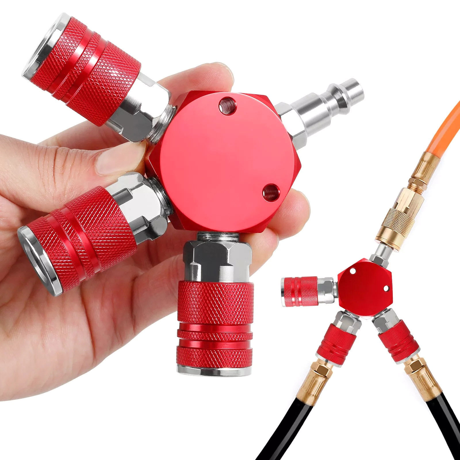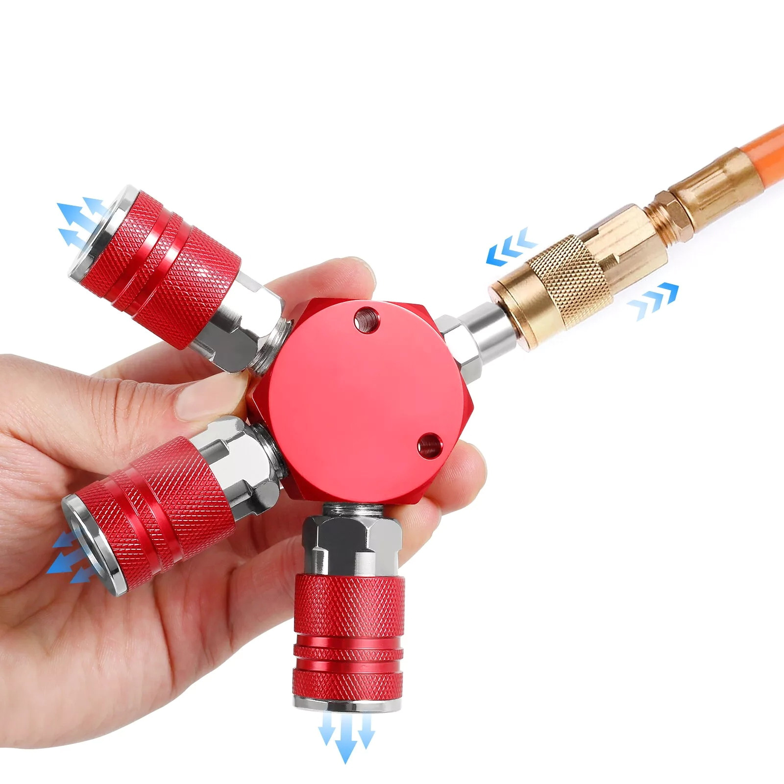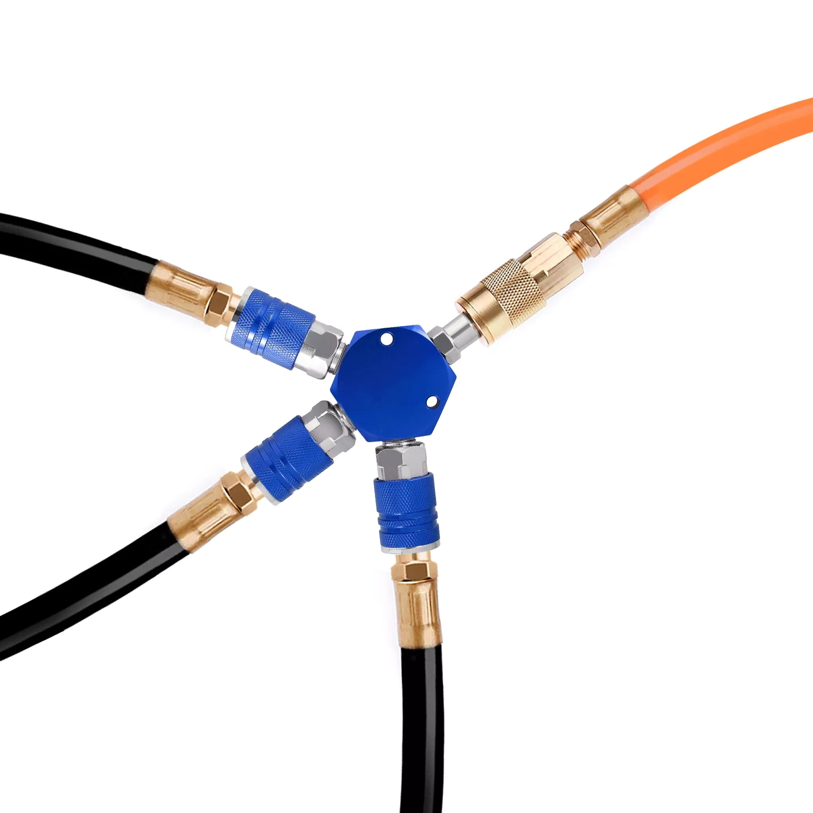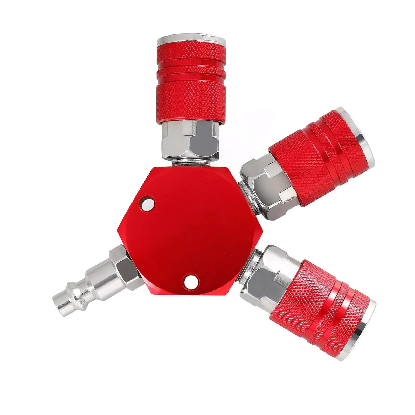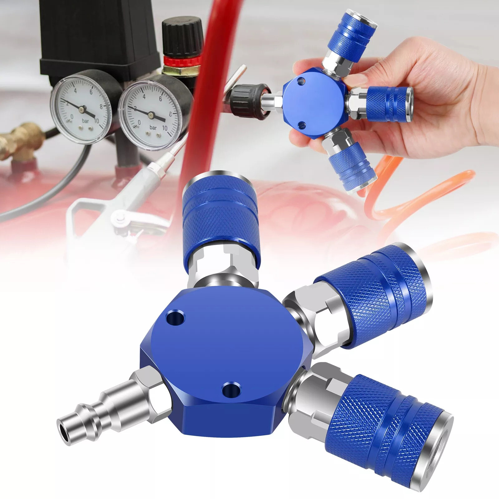 This 3 way air manifold is designed to effectively turn one airline from your air compressor into three independent airline, allowing you to complete your project more efficiently. It is an ideal accessory for the pneumatic system and has wide application.