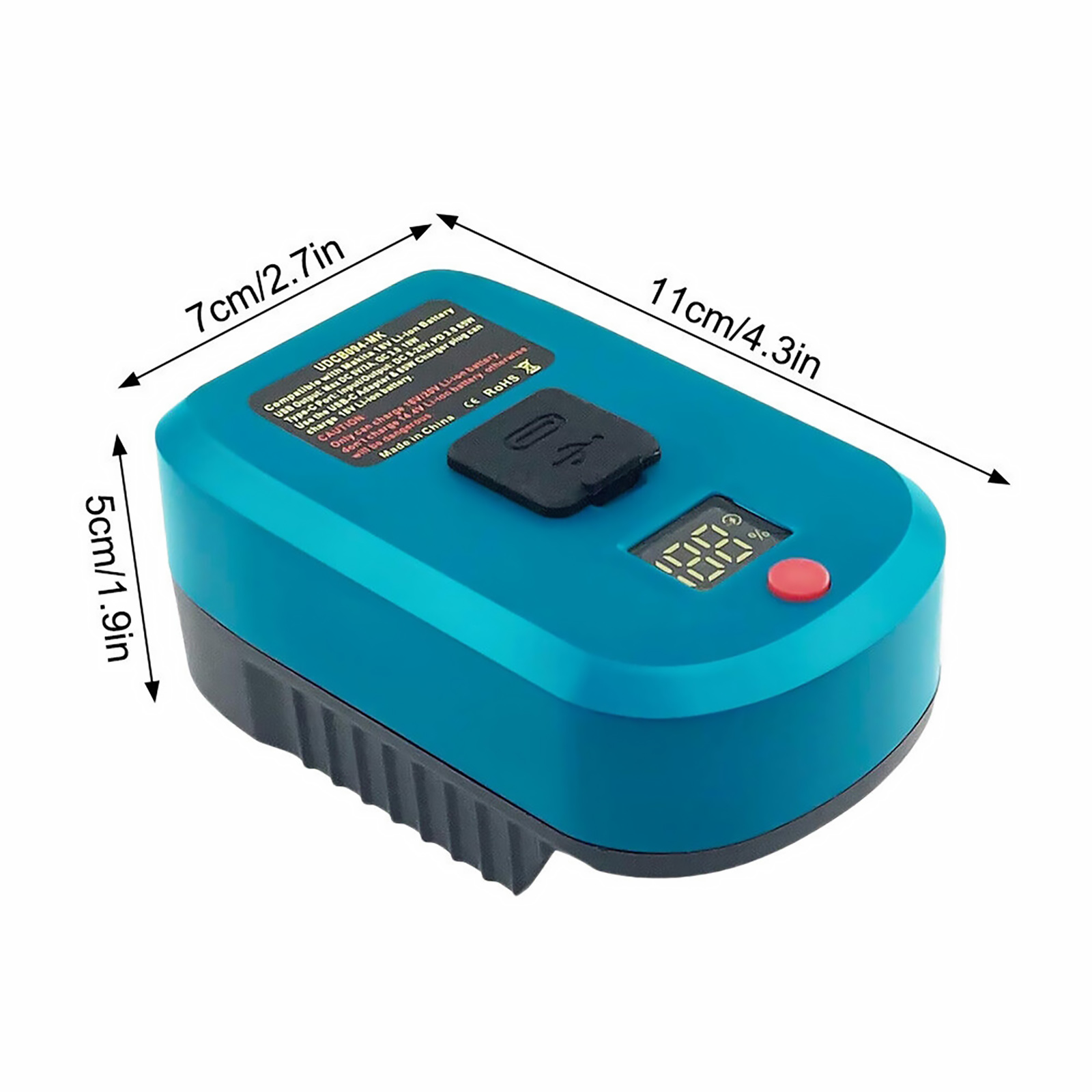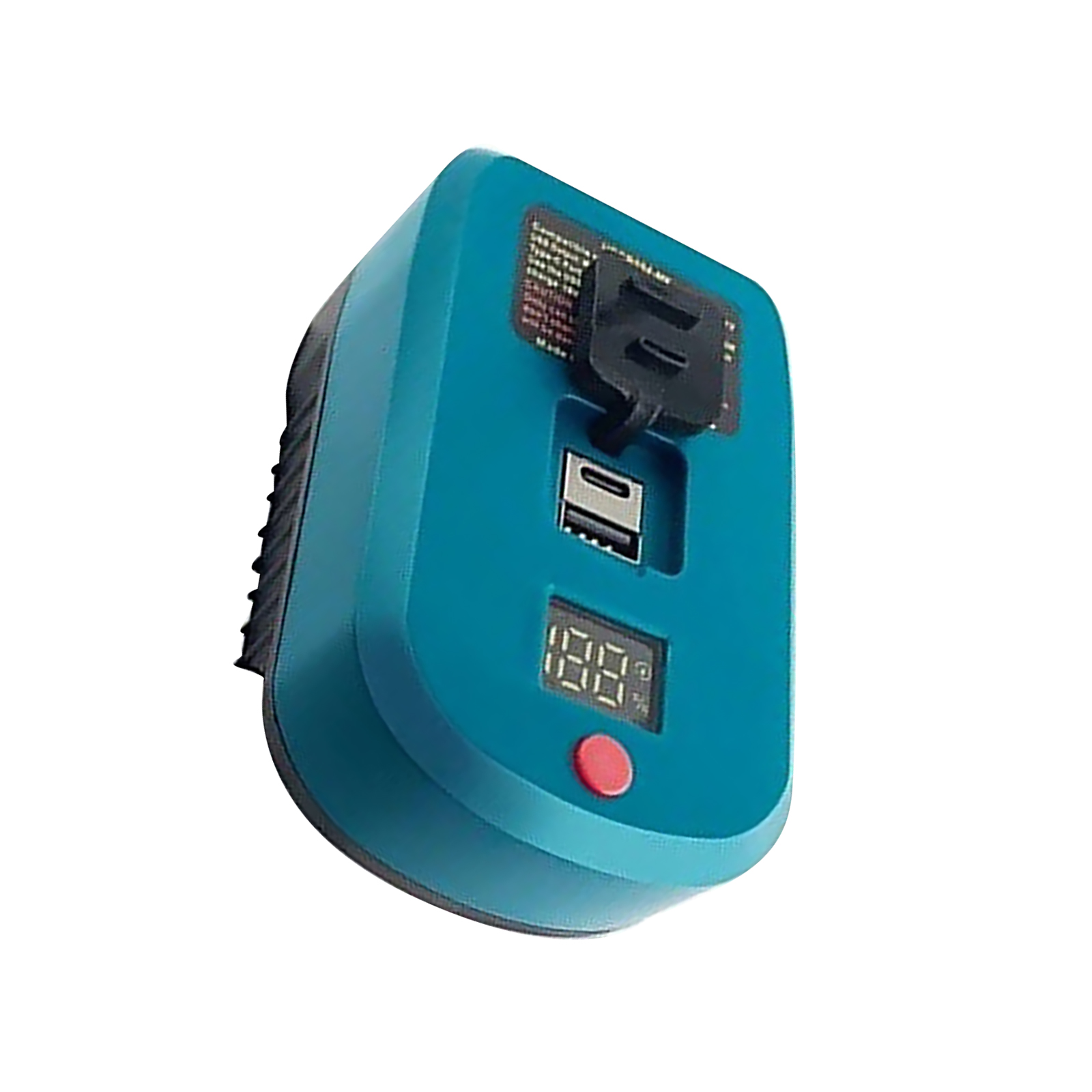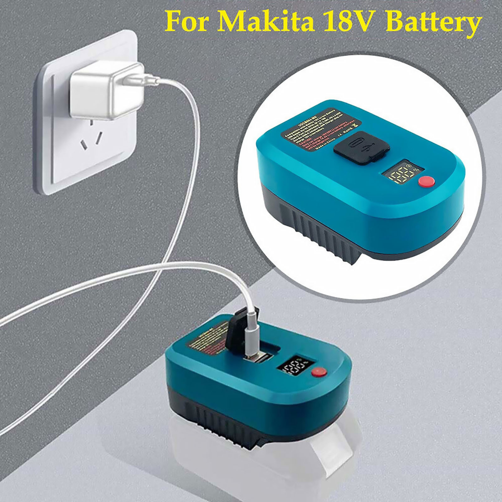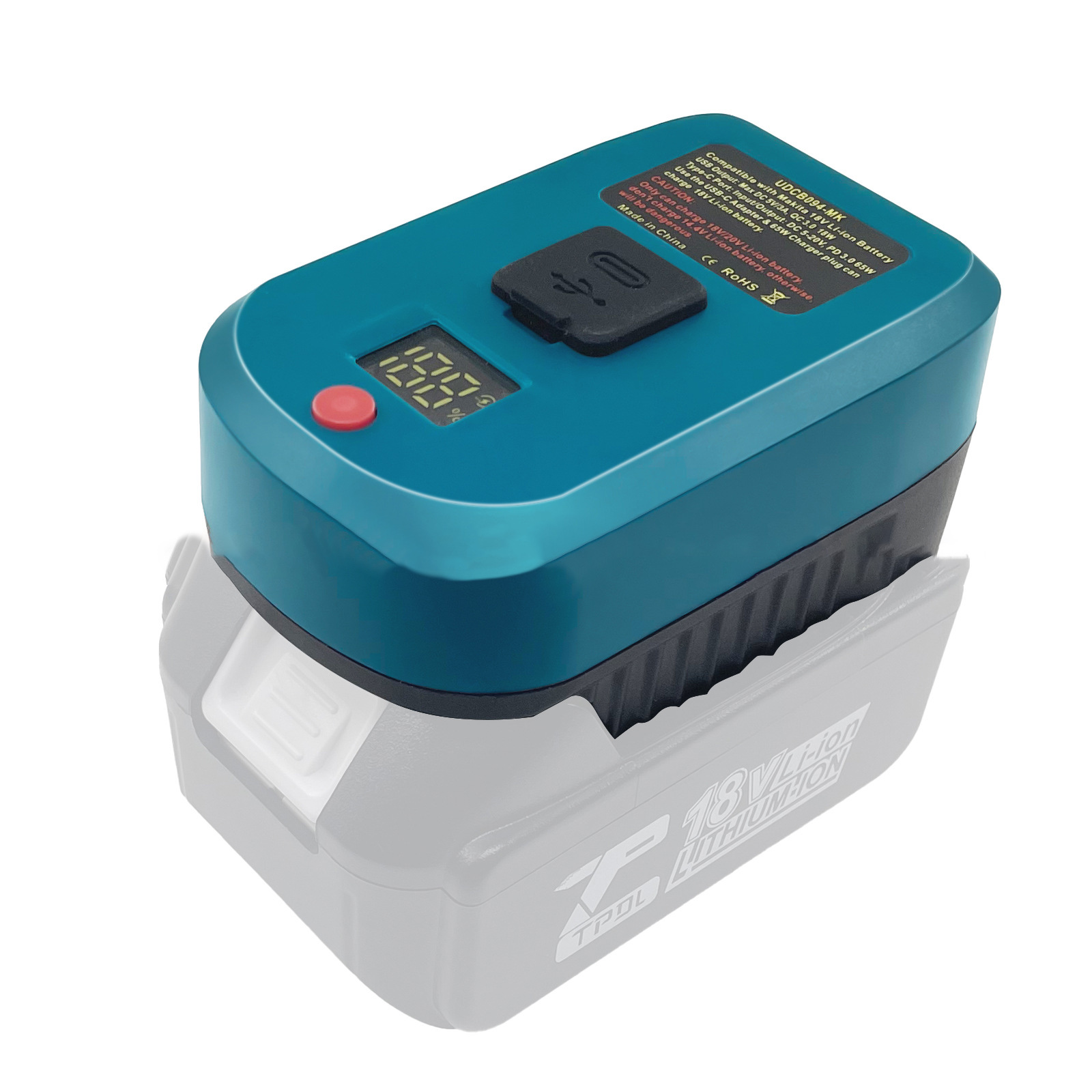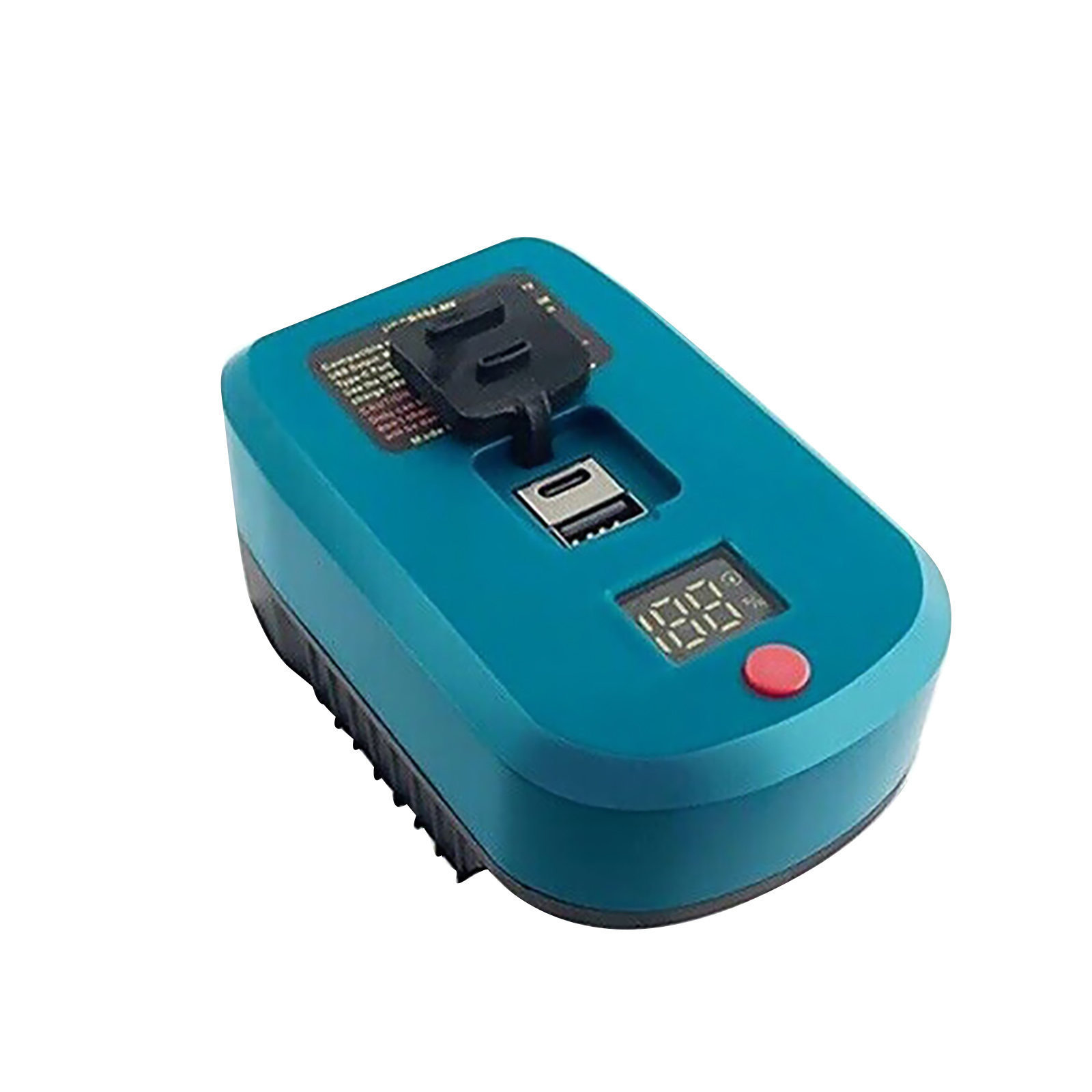 2 USB ports output: Output 1: USB Type-C 65W PD3.0; Output 2: USB-A QC3.0 18W. Use the 18V Li-ion battery (not included) on the construction site to charge small electronic devices as a power bank (for cameras, for iPads, for iPhone tablets, and other USB devices) when no main power is available.