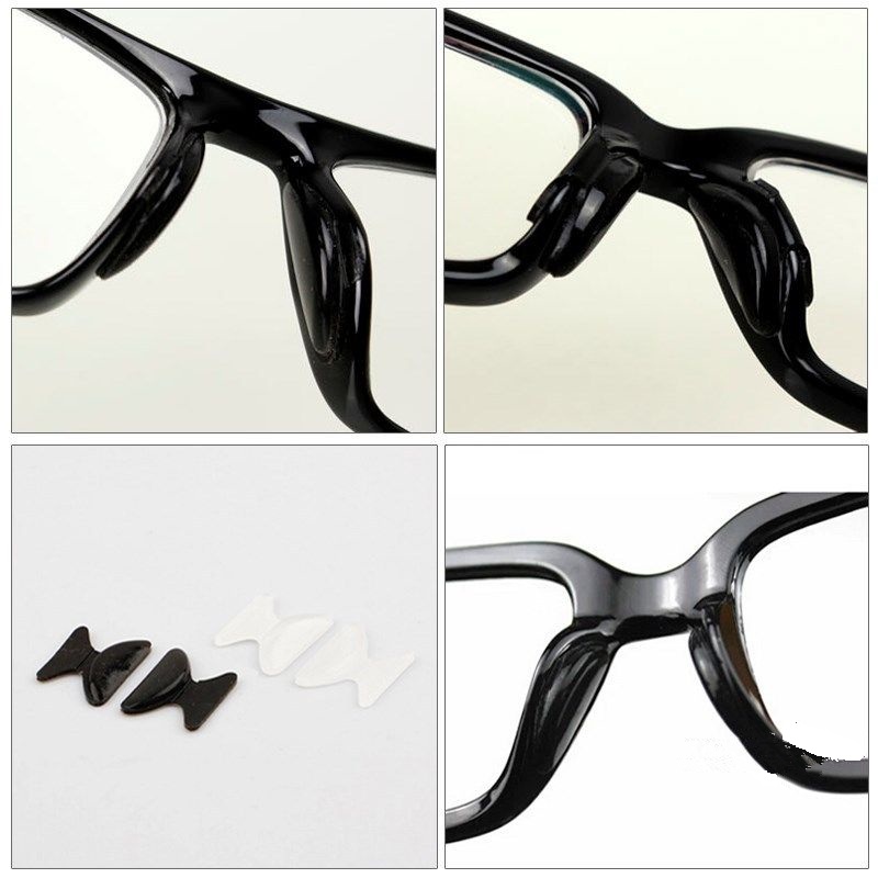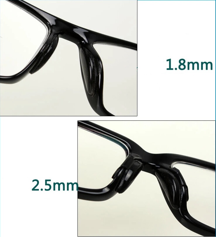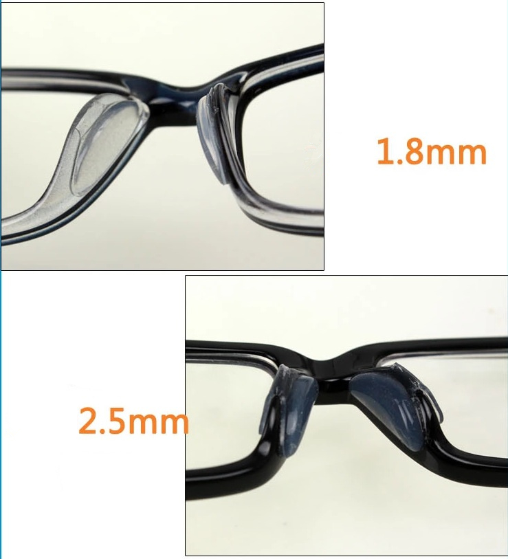 Stick on silicone nose pads for solid frame glasses.