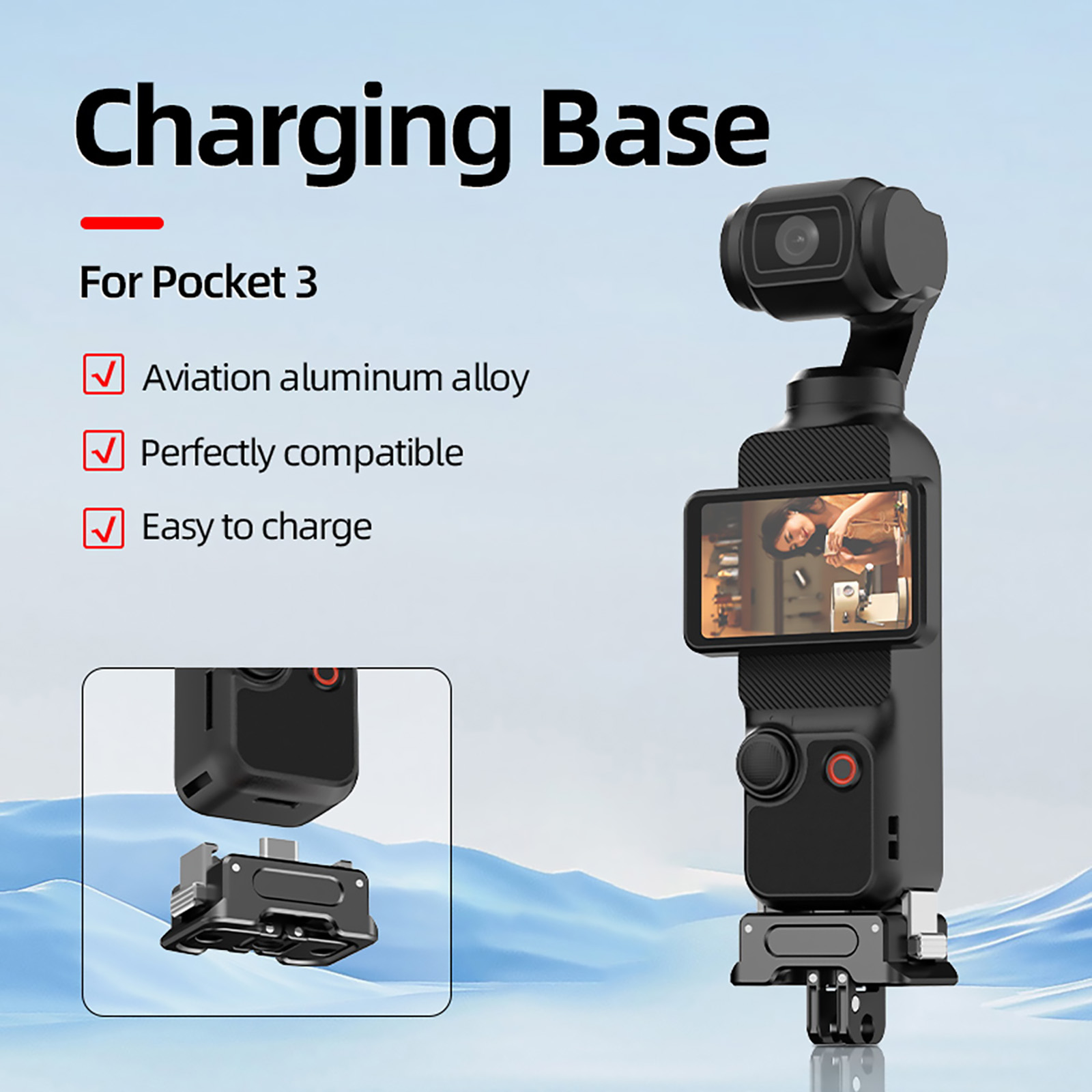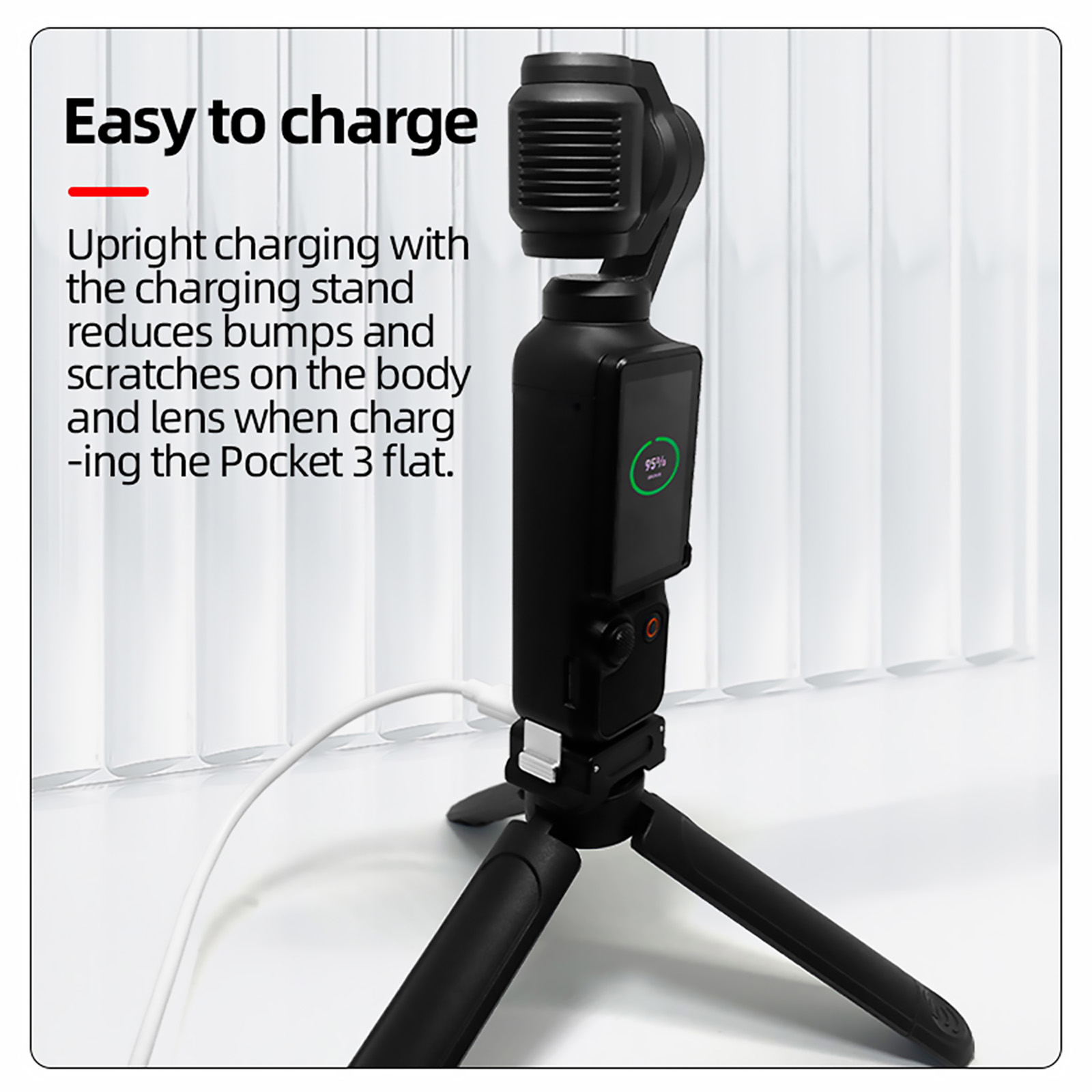 3. Button control, easy to separate, using the charging base, upright charging can reduce the for Pocket 3 flat charging, the body and the lens of the bump and scratch,