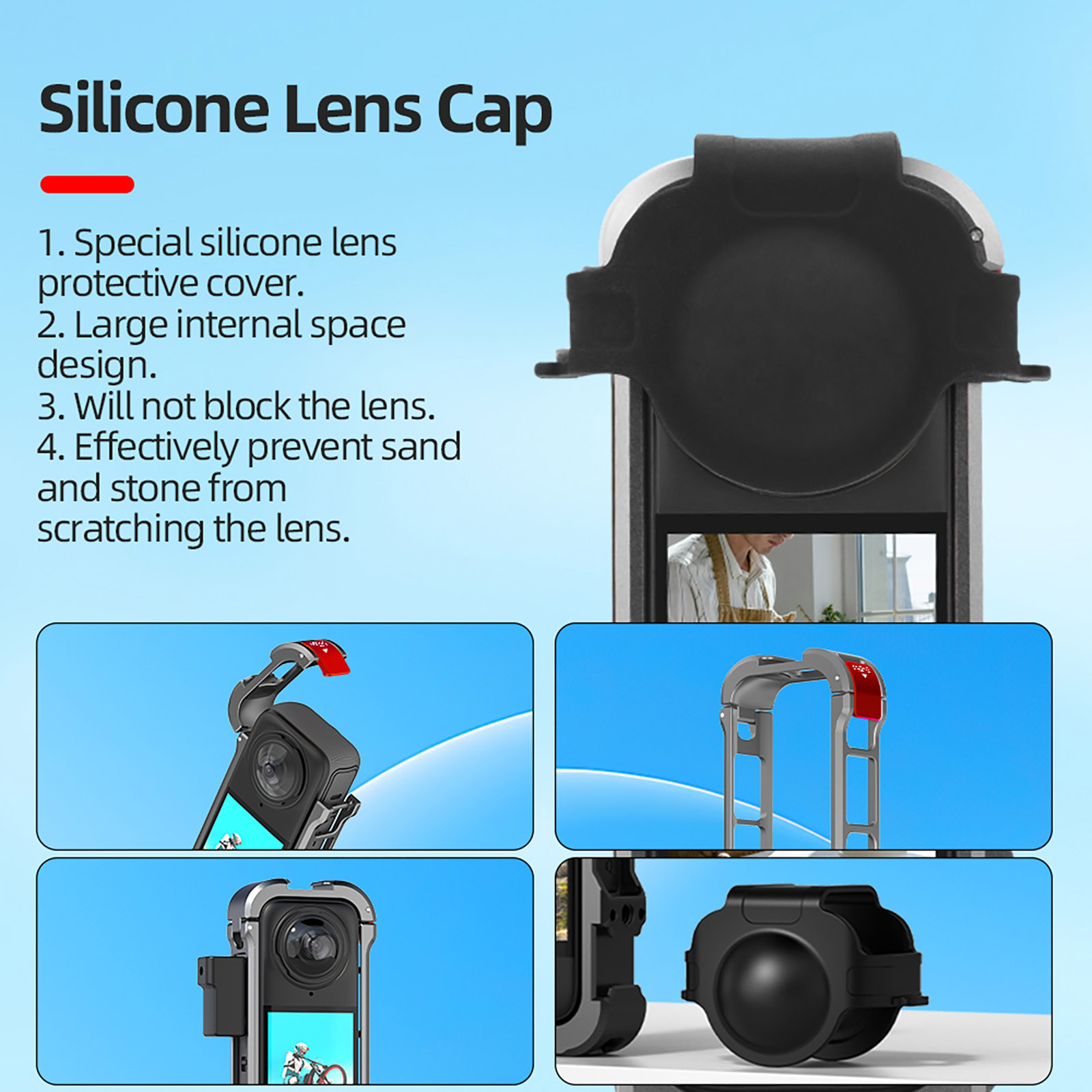 2. The lens cover is made of special silicone material, which is light and durable, does not wear the lens and protects the camera;