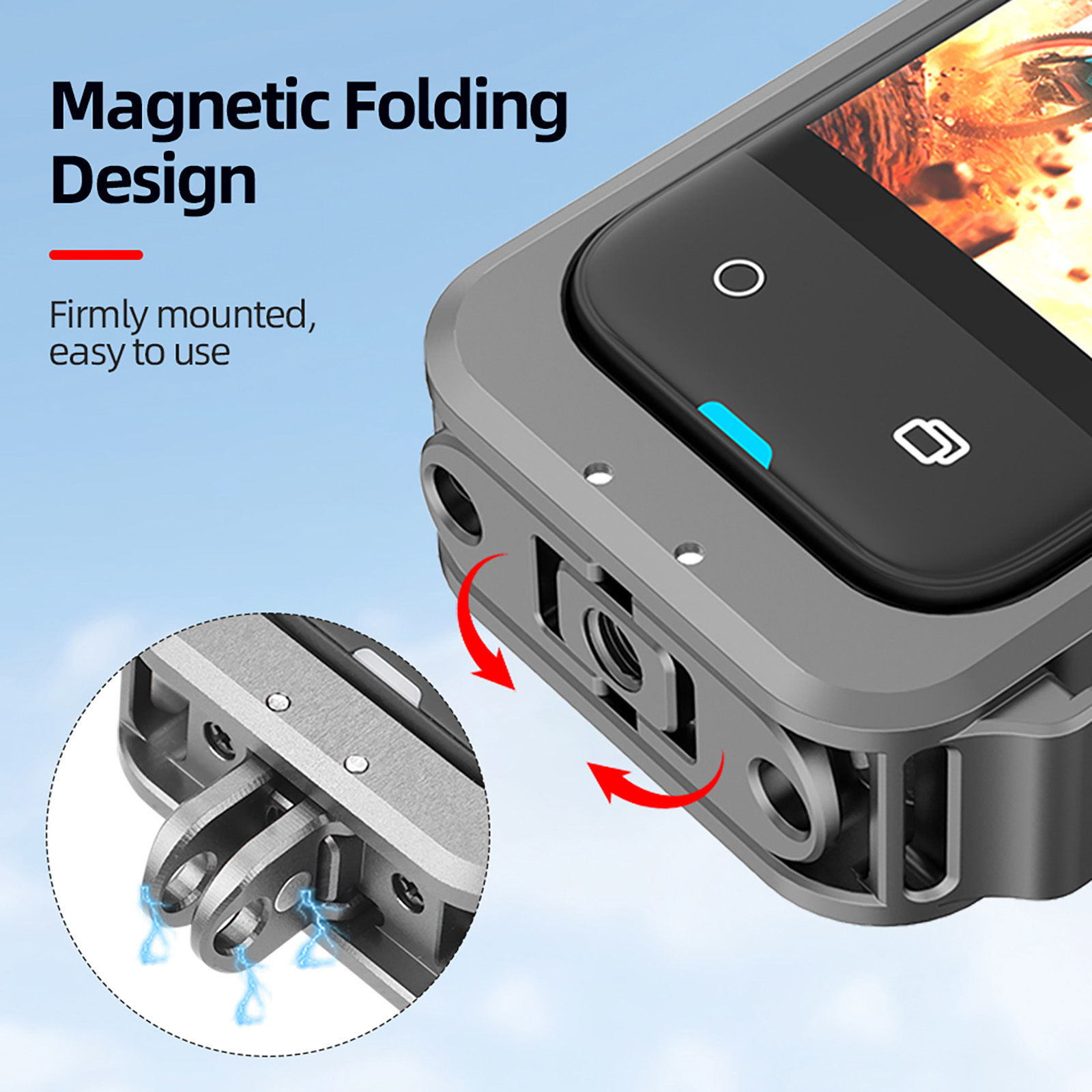 3. The folding magnetic mount can be hidden to connect to the action mount accessories, and can be unfolded to connect to the for GoPro mount accessories, which is simple and convenient to use;
