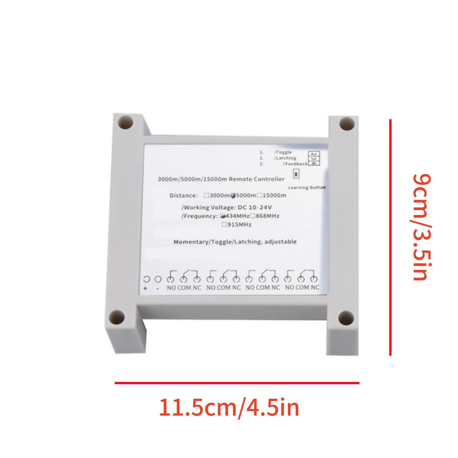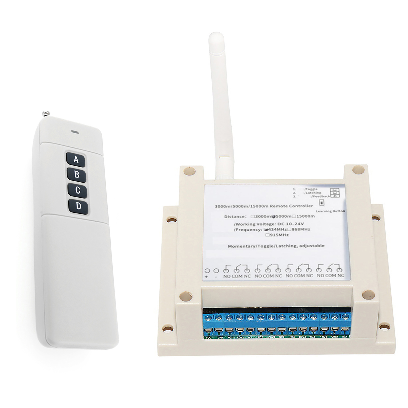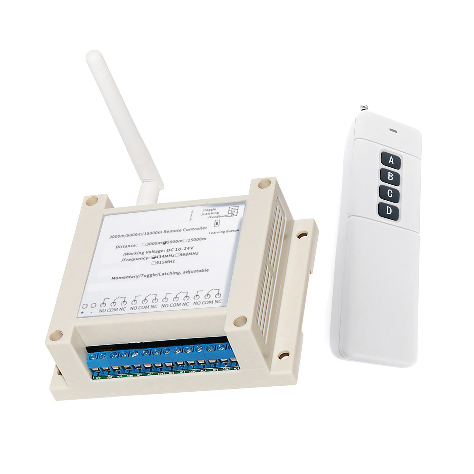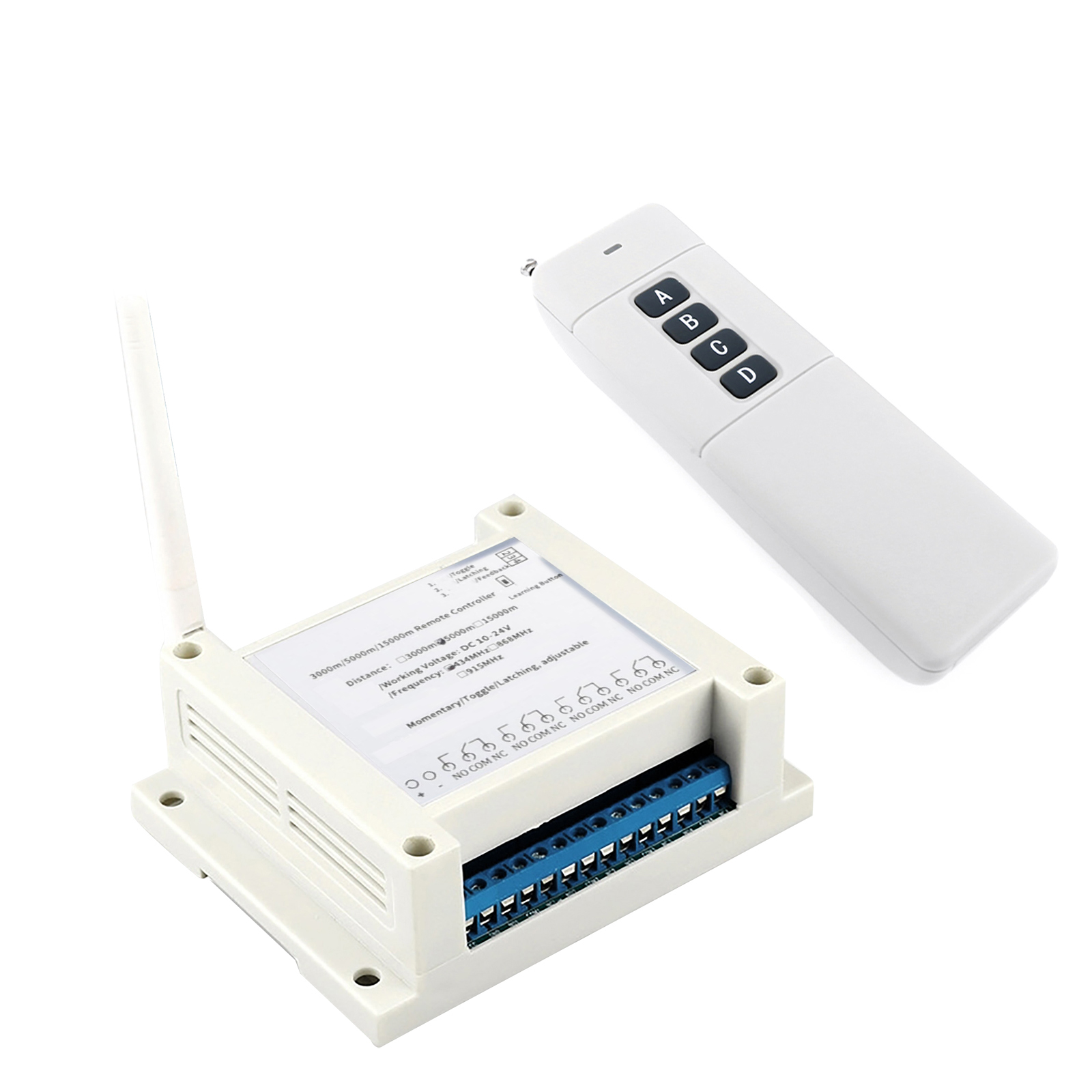 Wide Voltage Input DC 10V-24V, 4 Channels, Easy To Install. The Range Is About 5000m, In The Open Air, It Can Simply Pass Through Walls And So On. But Please Note: Trees, Walls Or Other Obstacles Will Shorten The Range.