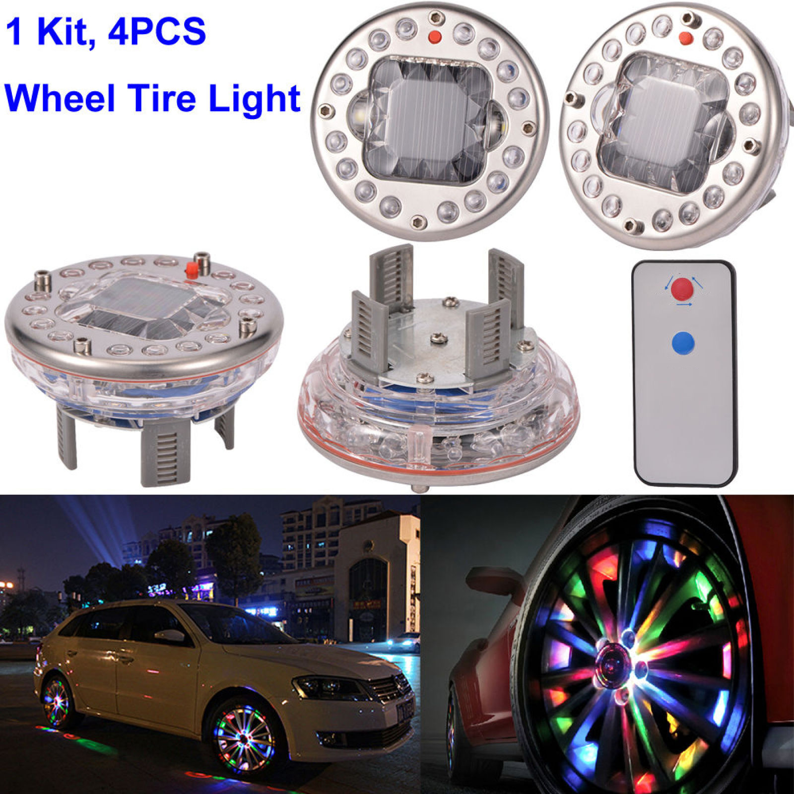 With 4 work pattern, the wheel light color could be changed to: Red, Blue, Green, Multicolor.