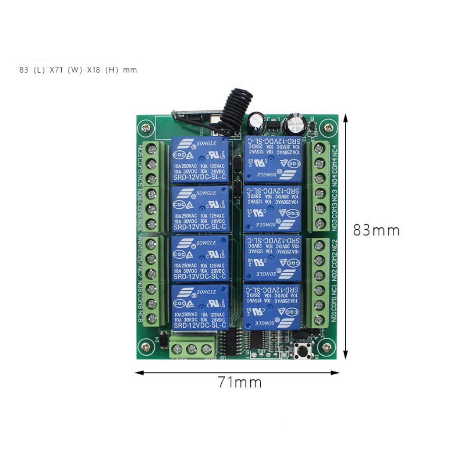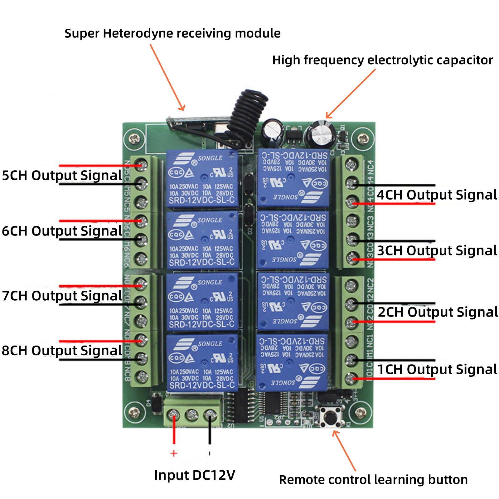 Multi Functional Eight Channel Wireless Intelligent Remote Control Switch, Outputting Switch Signals For Eight Relays, Can Enable The Controlled Equipment Or Motor To Meet The Requirements Of Switch Or On/Off Conversion, As Well As Various Special Control Programs