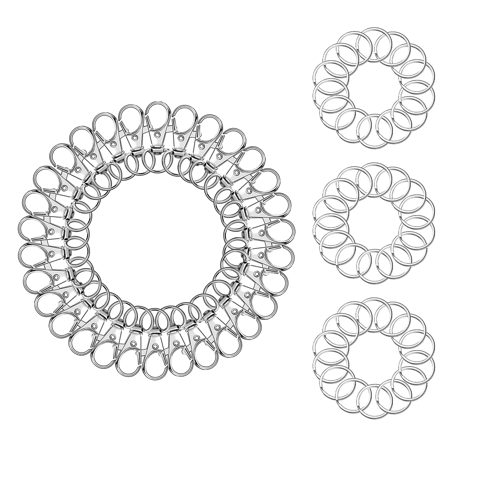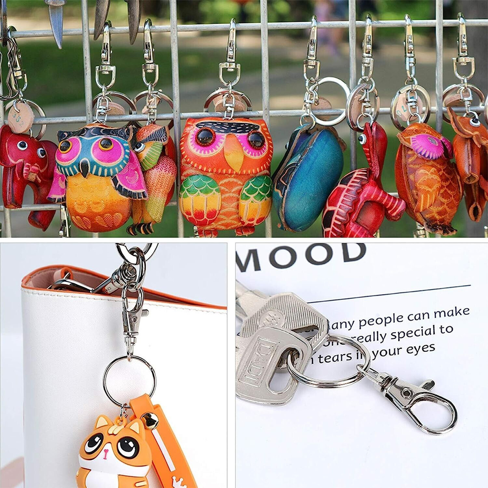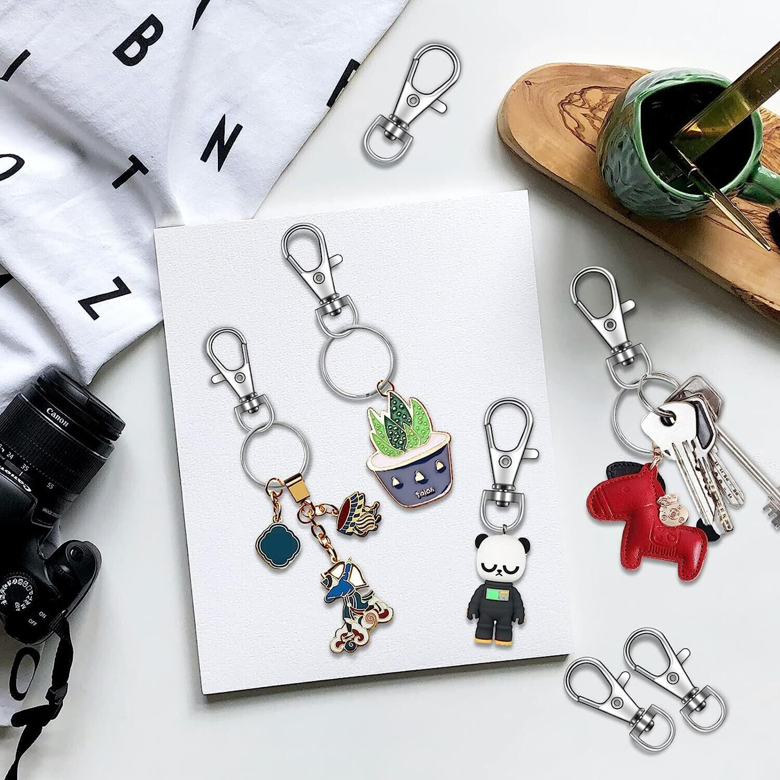 The keychain clasps can apply to many practical uses in schools, offices, and home use. Perfect for kids' art projects, hanging curtains, DIY crafts, and displaying photographs, the creative possibilities are endless. It is also fit for making lanyards, keychains, zipper pulls, dog collars, handbag purse straps and so on.