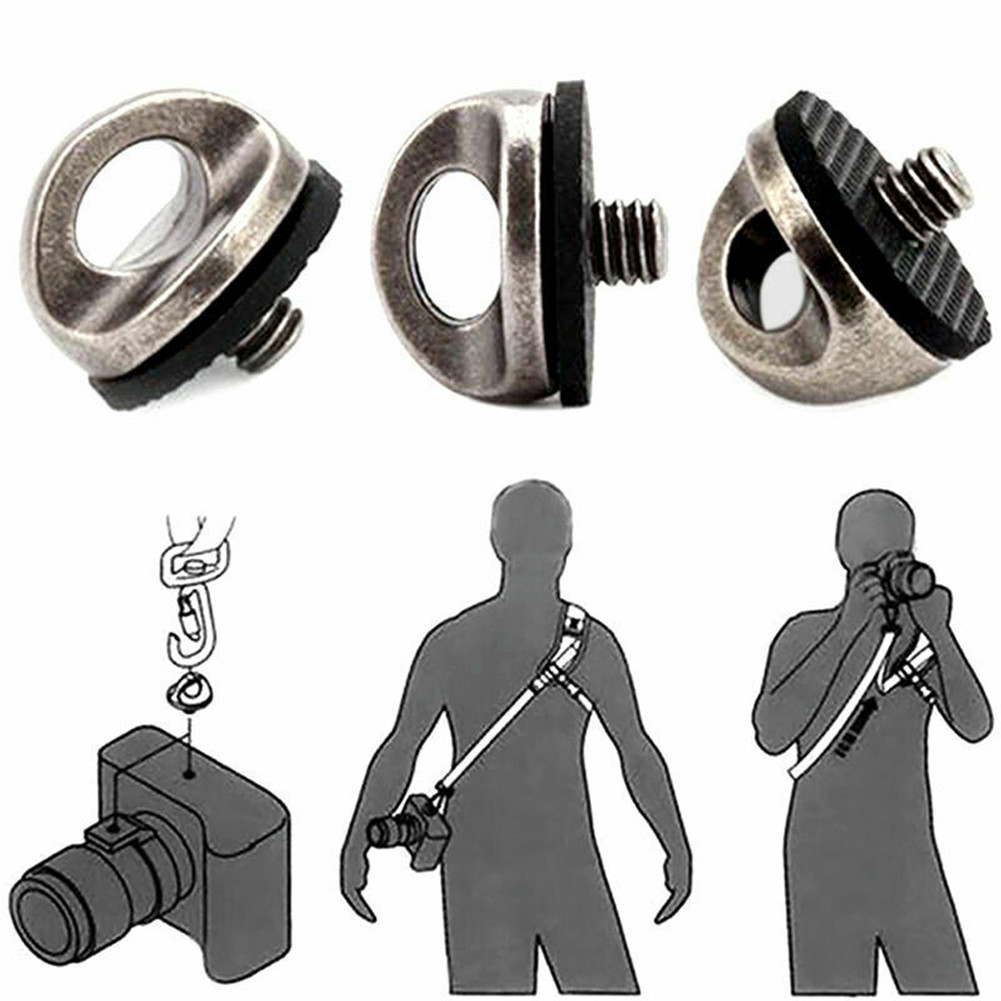 1/4'' screw on to connect your camera with wrist strap, shoulder strap or neck strap.