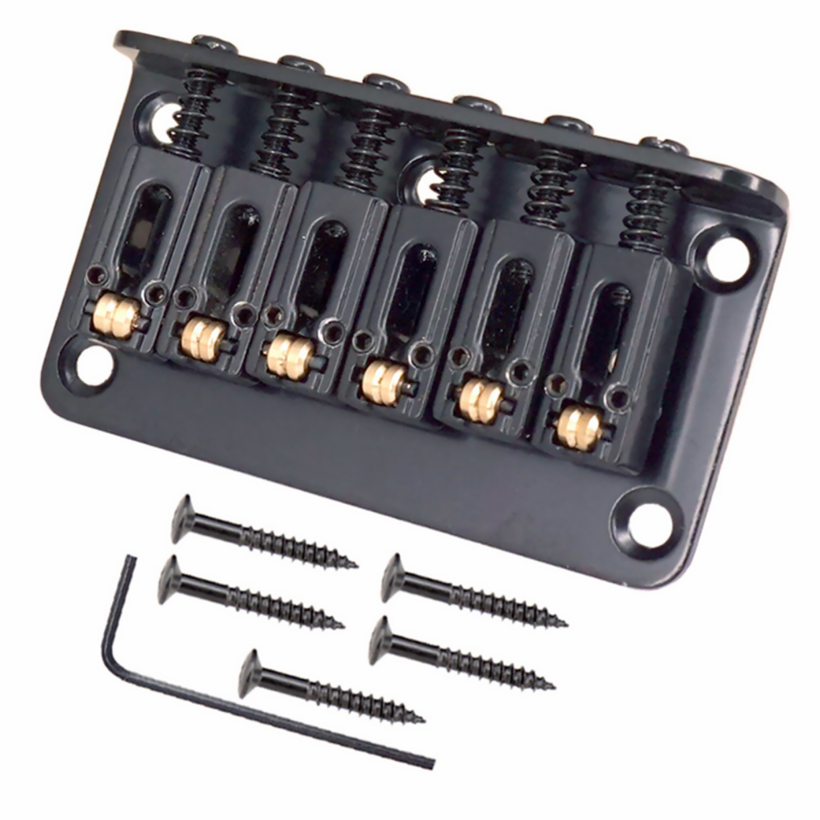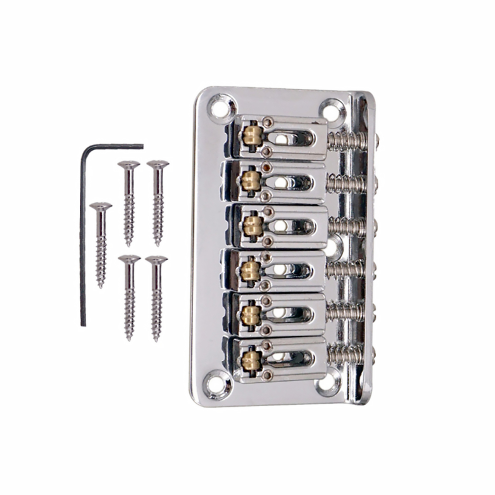 6 String Roller Saddle Hardtail Bridge with Wrench Screws for Electric Guitar Replacement.