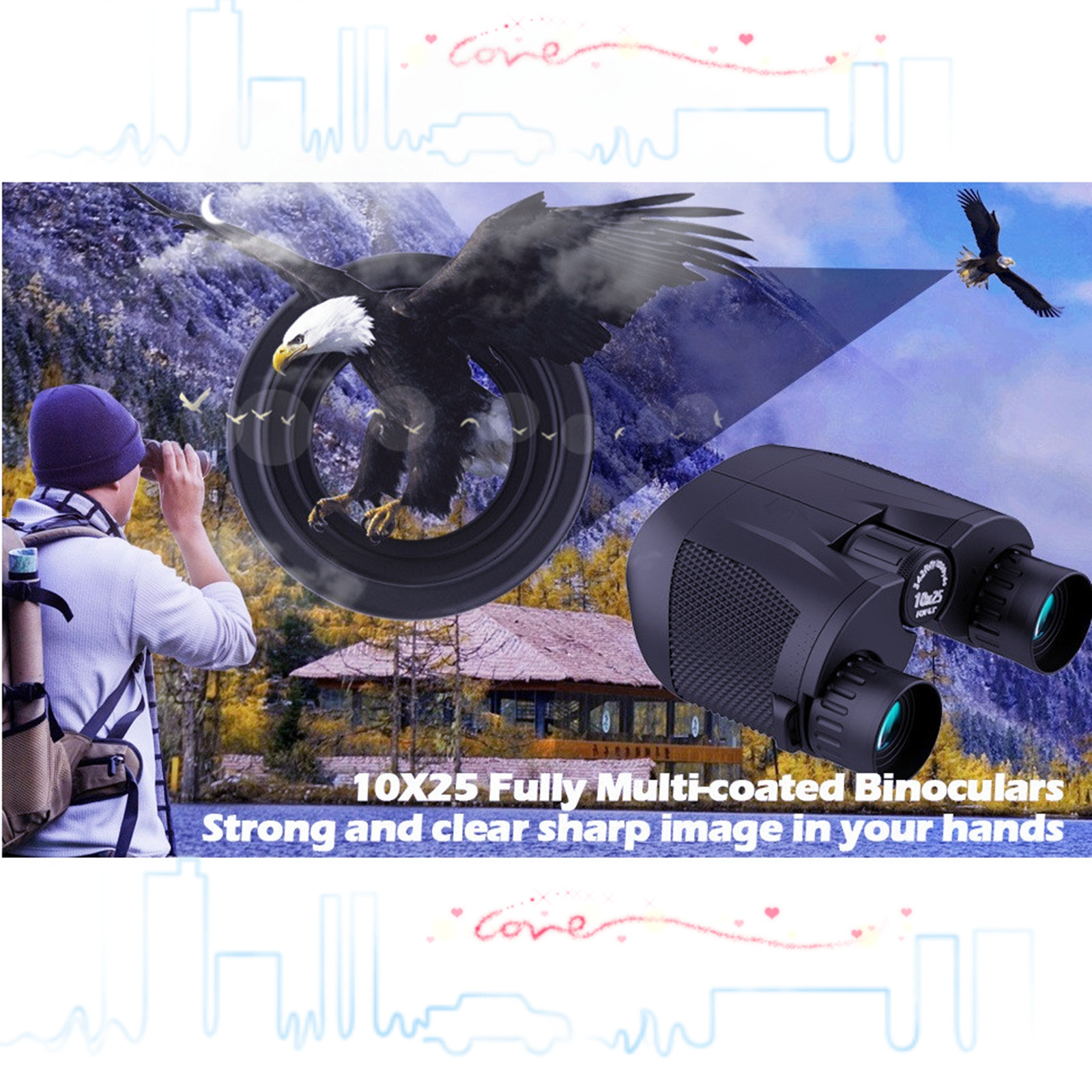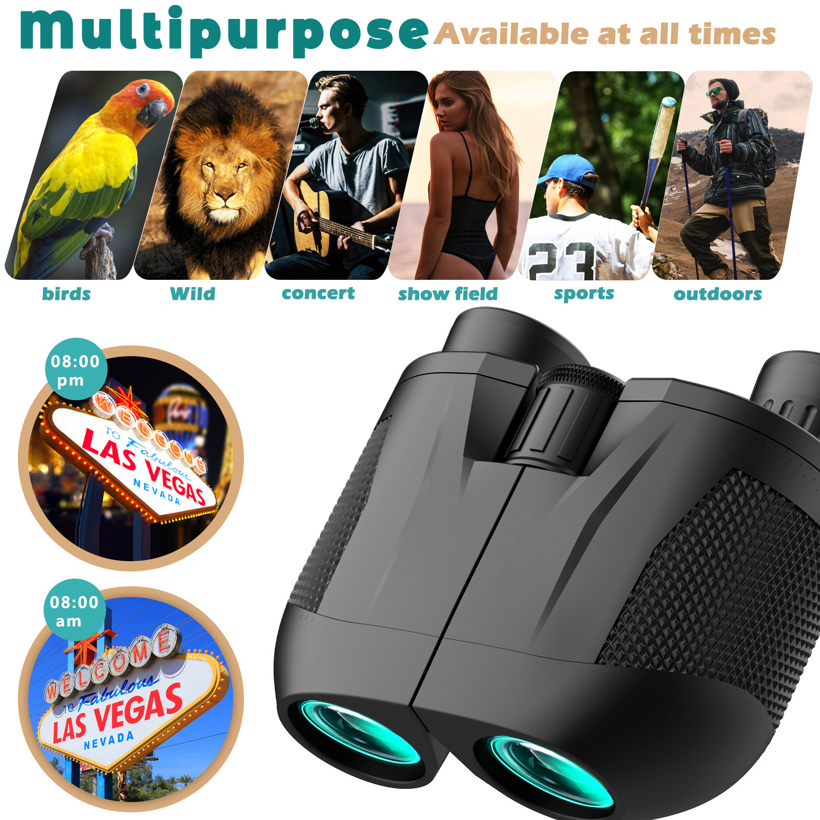 4. Provide clear wide view in long distance, see the scenery of 1000m, suitable for hunting, bird watching, adventure, concerts, hiking and other outdoor activities.