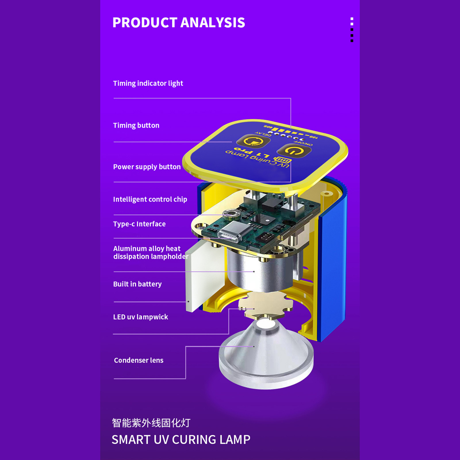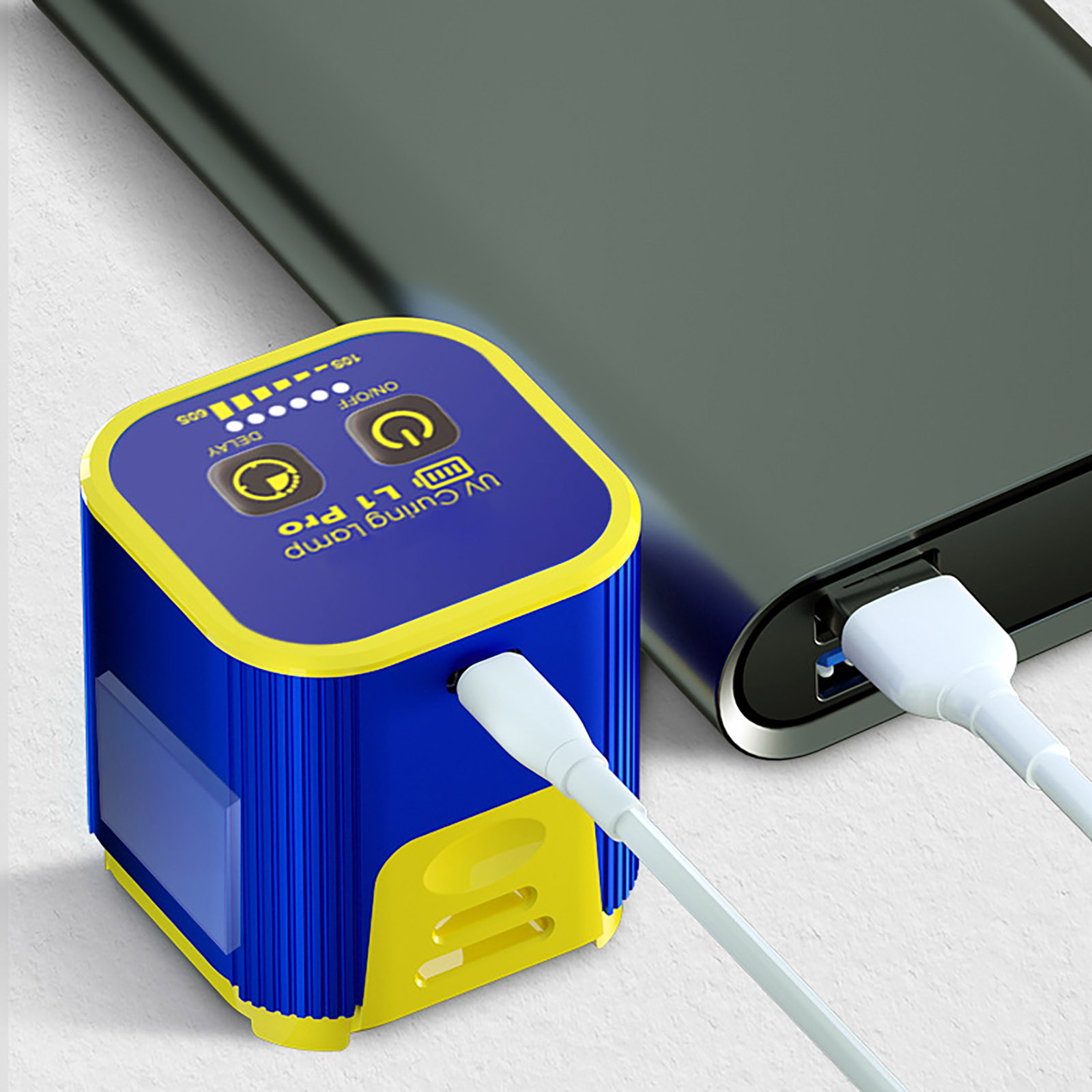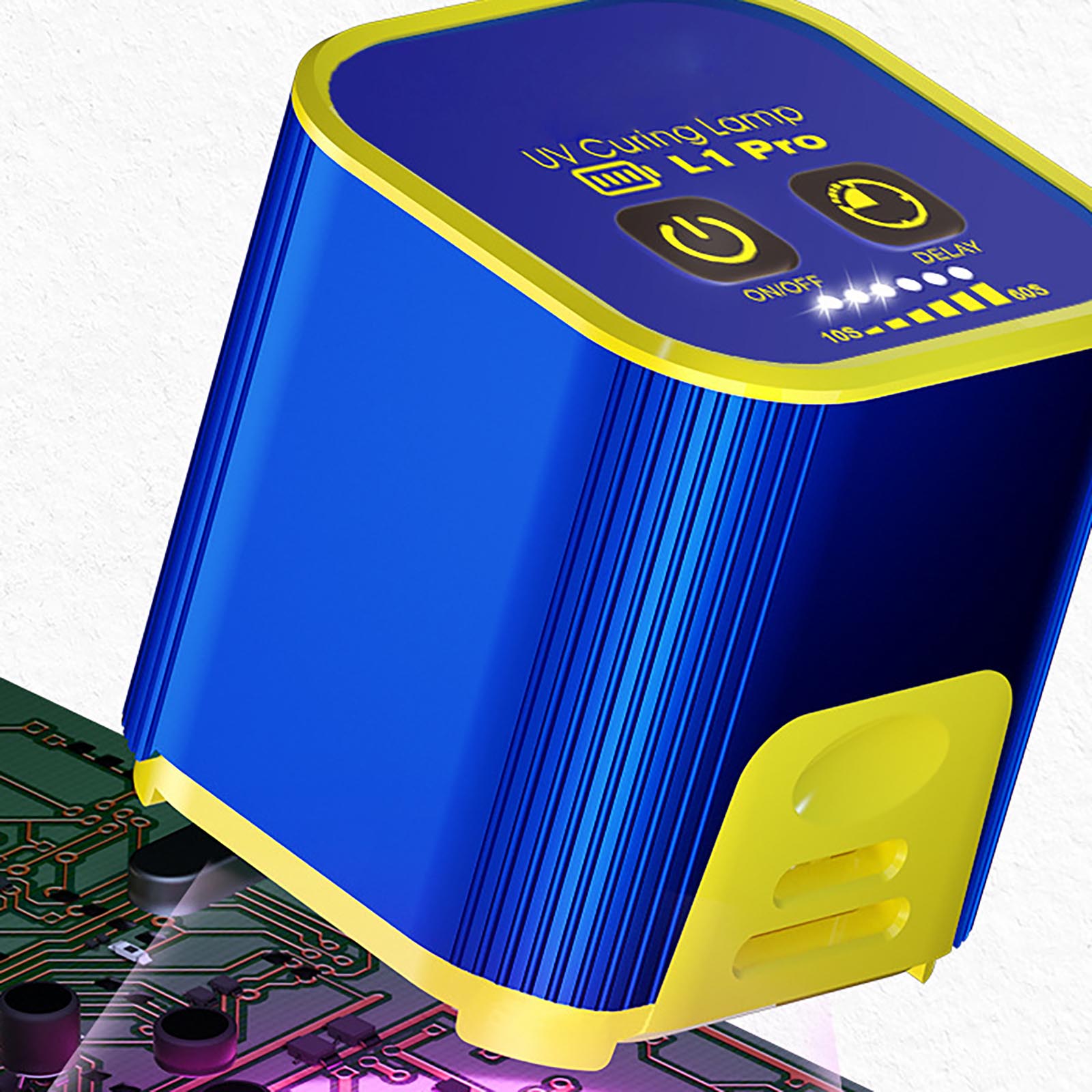 This UV curing lamp features an anodized aluminum case, which provides both durability and a sleek, professional appearance. Its solid construction ensures reliable and long-lasting performance.