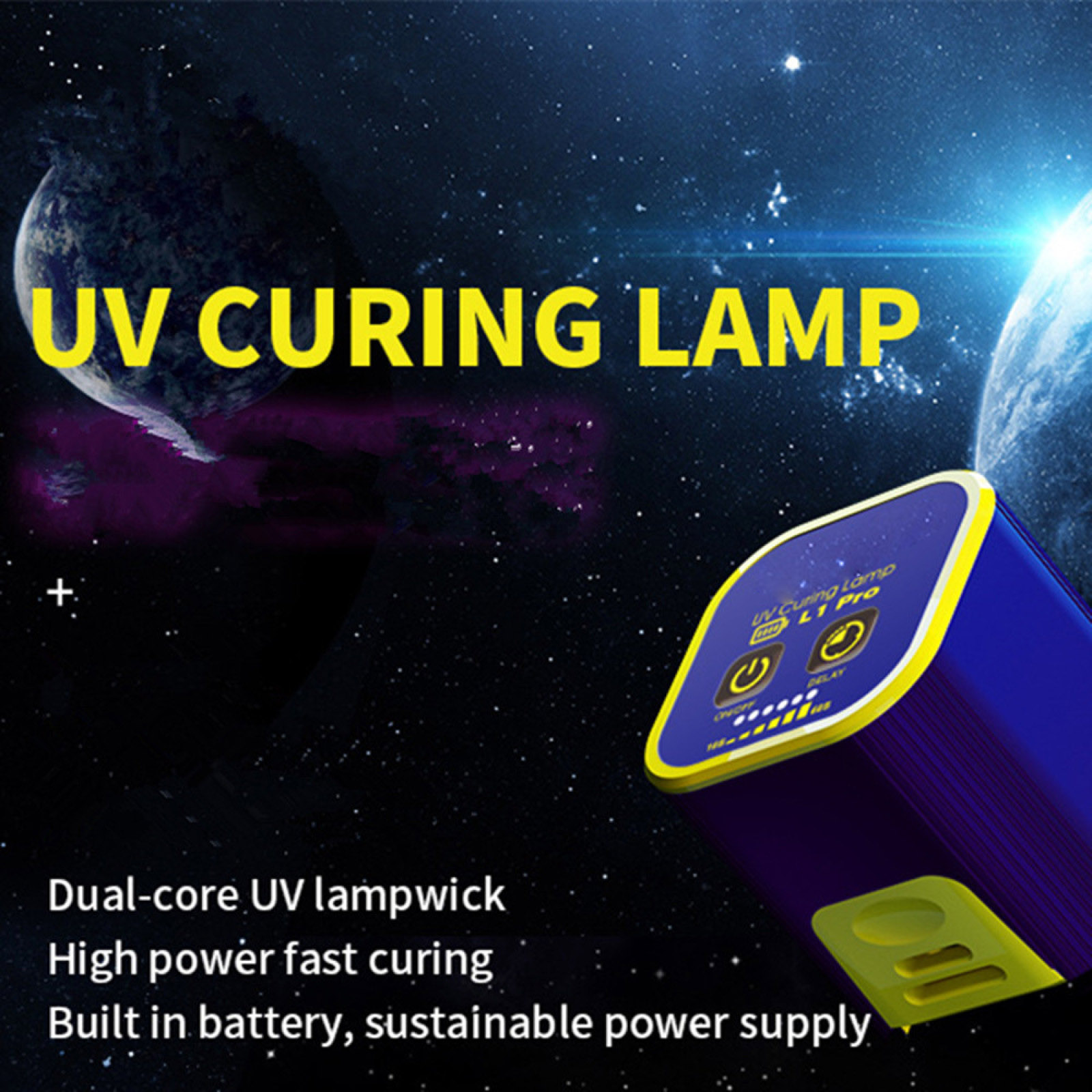 Dual-core UV lampwick high power fast curing built inbattery, sustainable power supply