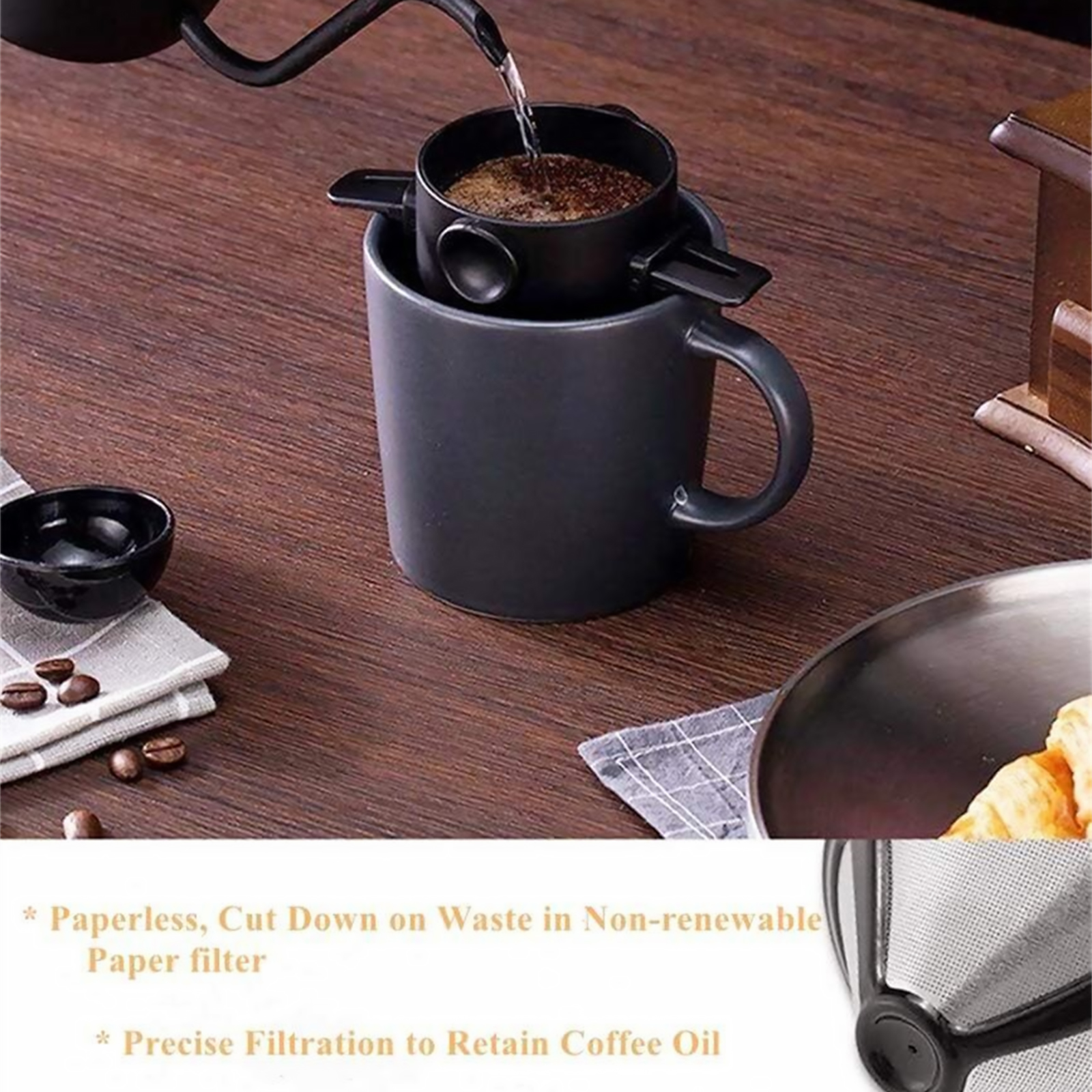 1. No filter paper, no peculiar smell, more environmentally friendly: no need to worry about the peculiar smell of filter paper affecting the coffee flavor.
