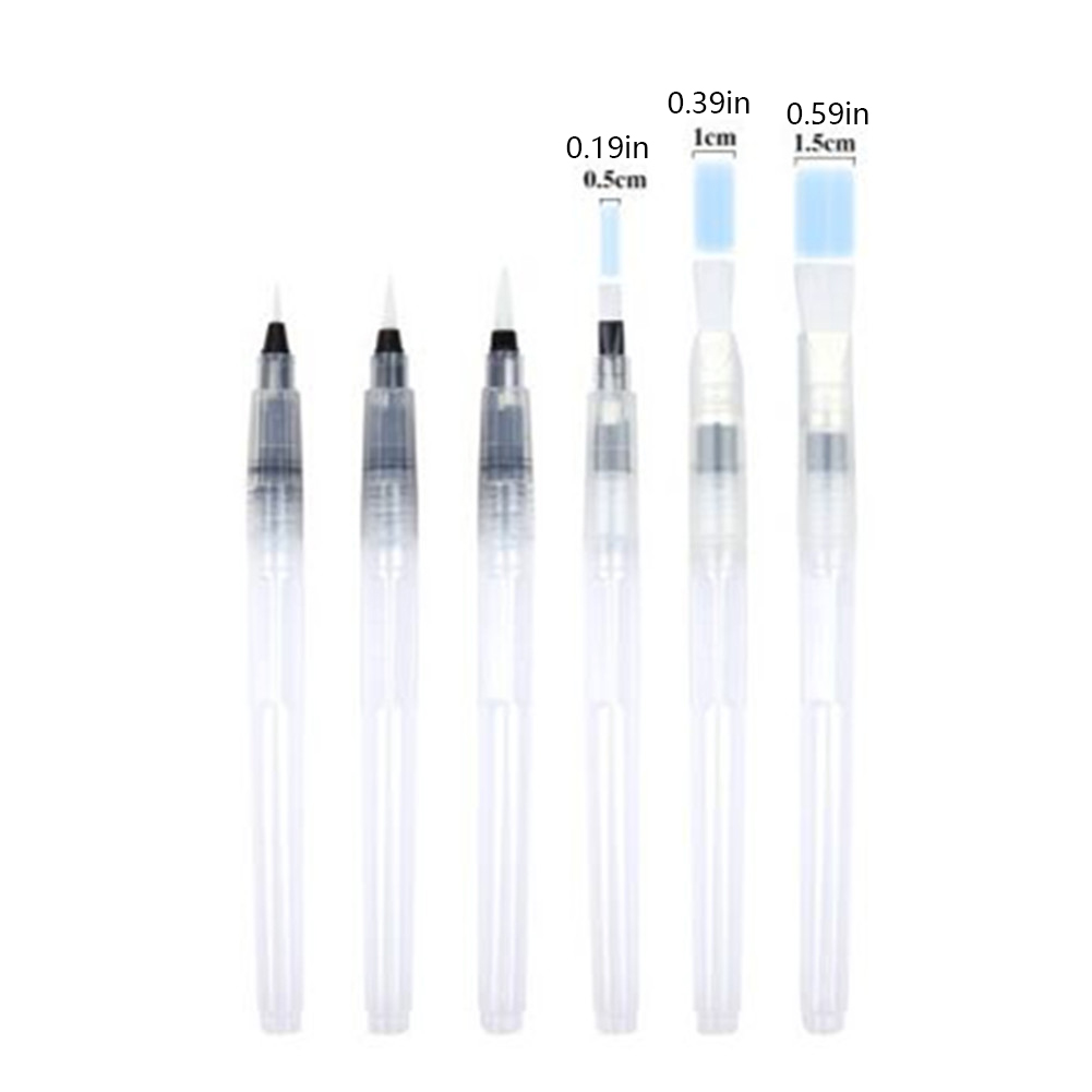 This watercolor brushes set includes 6 pieces brushes with different tips : 3 rounded tips and 3 flat tips. The 3 rounded tips diameters are 2mm, 3mm and 4mm; the 3 flat tips diameters are 5mm, 10mm and 15mm.