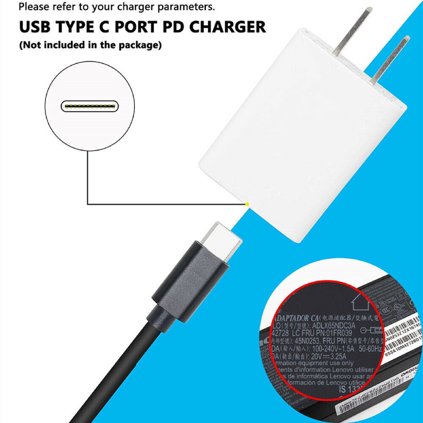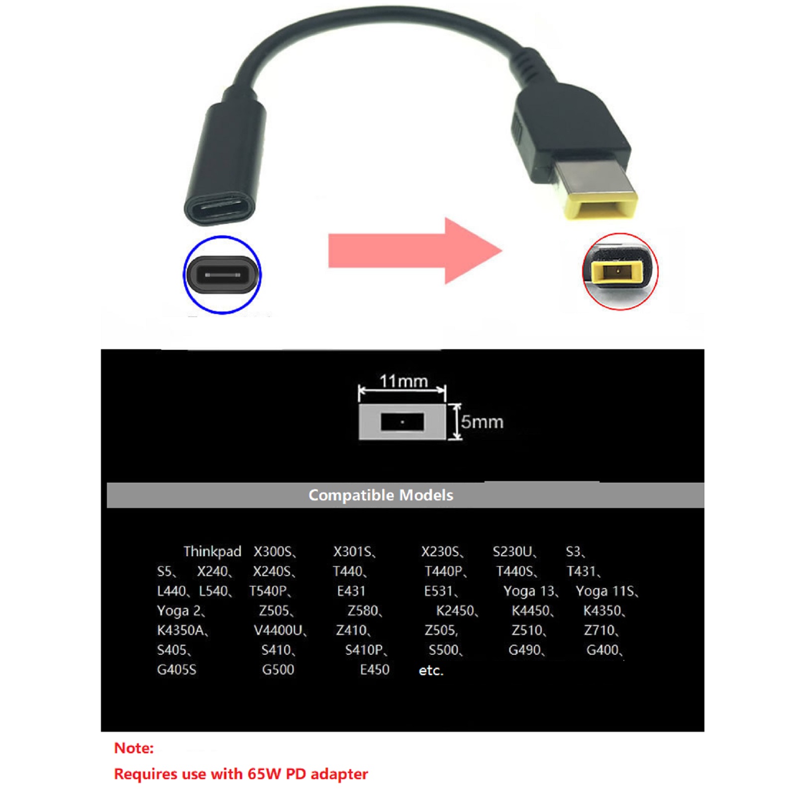 2. This PD to DC cable must use a PD (USB-C Male) 65w or less power wall outlet adapter.Power shortage will cause charging failure.
