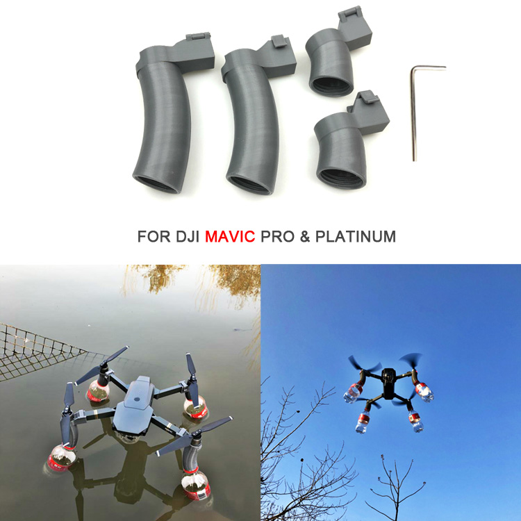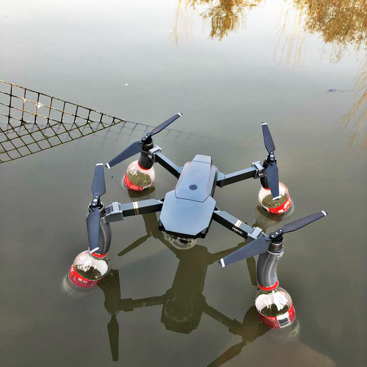 2. This product can be installed to the Mavic installed four Coca-Cola empty bottles, landing and takeoff in the water, the use of "eight" design greatly reduces the danger of the aircraft crashed into the water