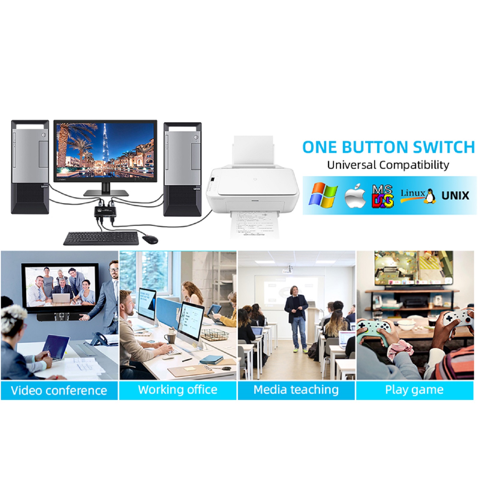 3. Wide Compatibility: The 4K@120Hz HDMI 2.1 KVM Switch can work as a normal 2-port HDMI 2.1 switch and is compatible with Xbox Series X/S, PS5, PS4 Pro, Apple TV, etc
