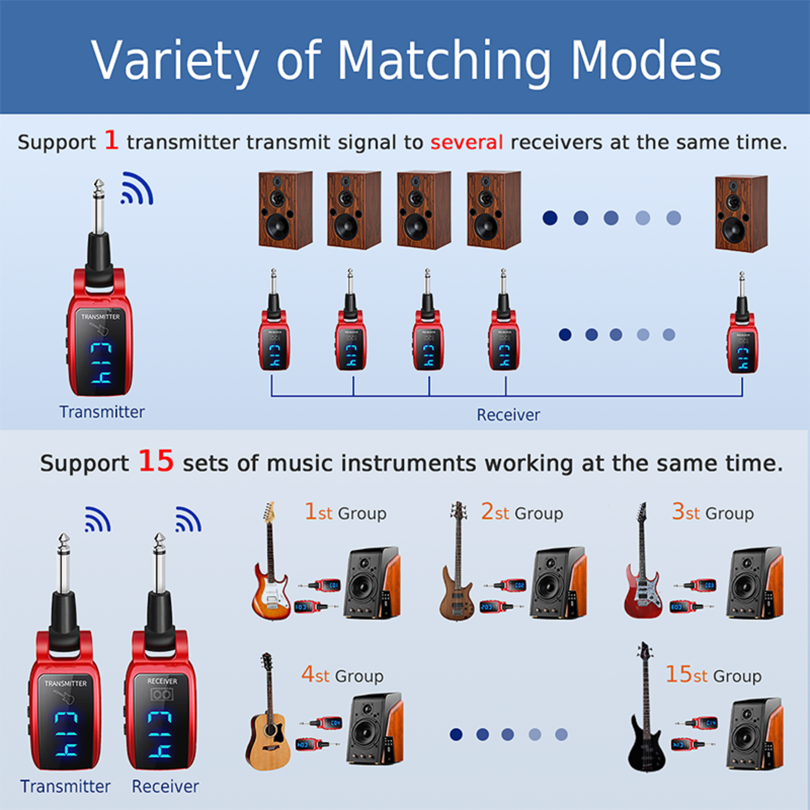 One transmitter, can support multiple devices to receive, the transmission range can reach more than 30 meters.