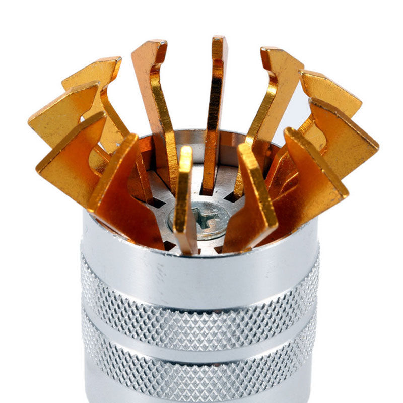 All you do is open the teeth by turning the wrench and closing it on the crystal for a tight grip