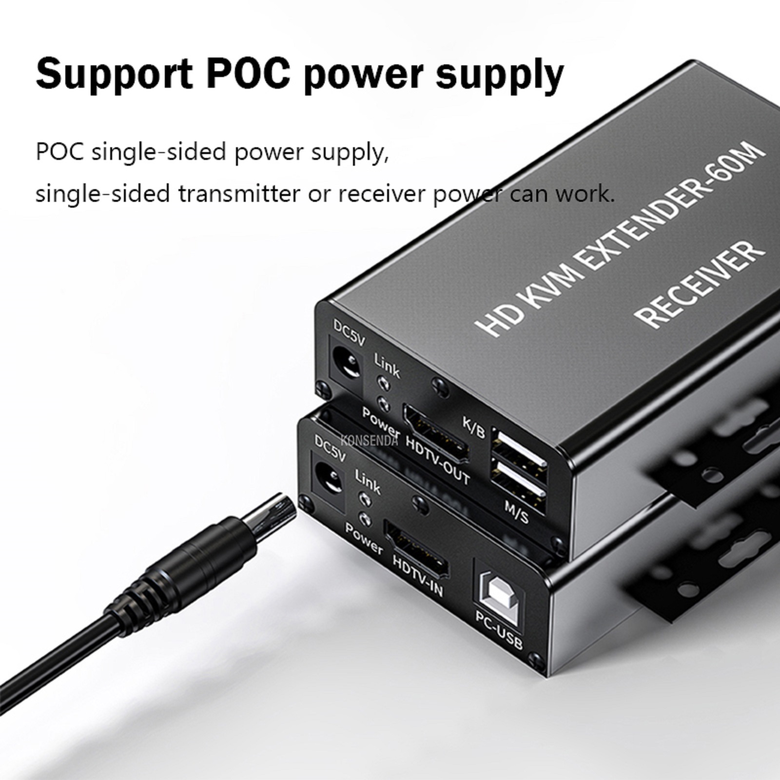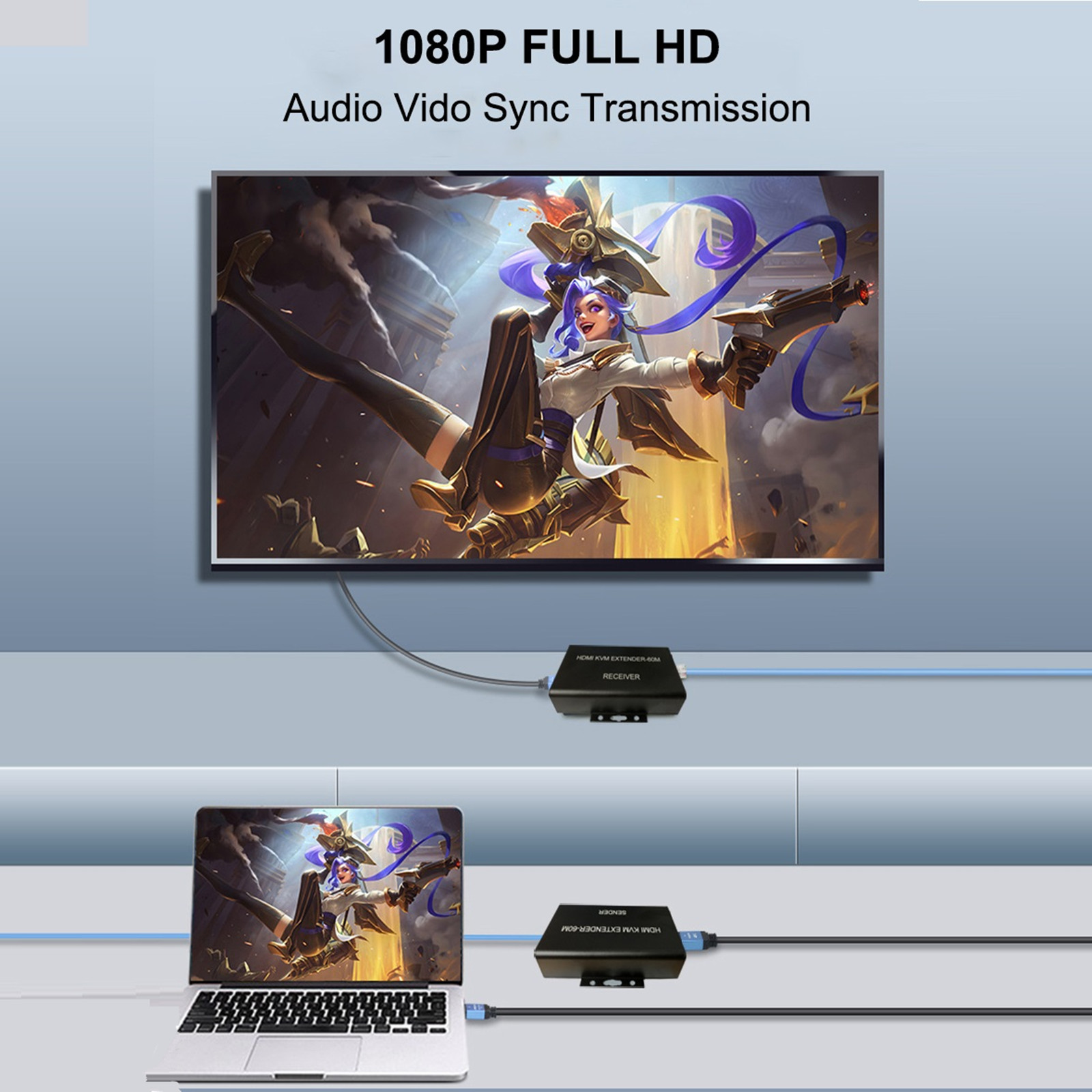 4. Transmission distance can be up to 60 meters for 1080p while using CAT6 cable.