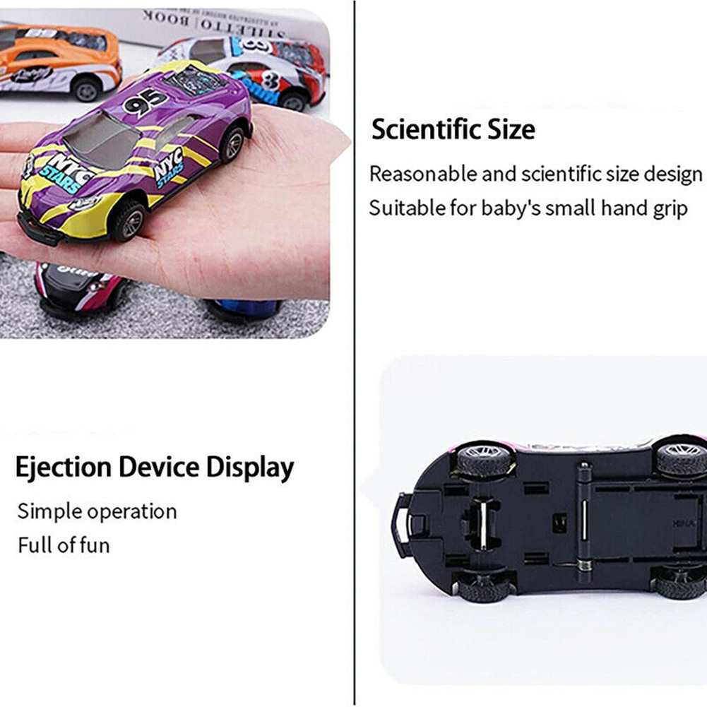 After the car crashes, the ejector will trigger to make the car jump and turn around. The jumping stunt car fascinated me.