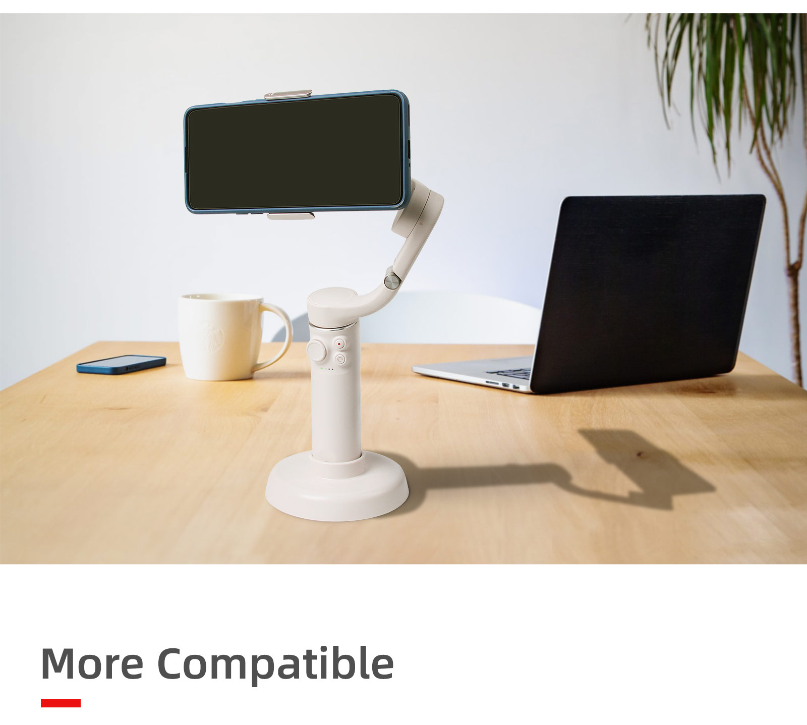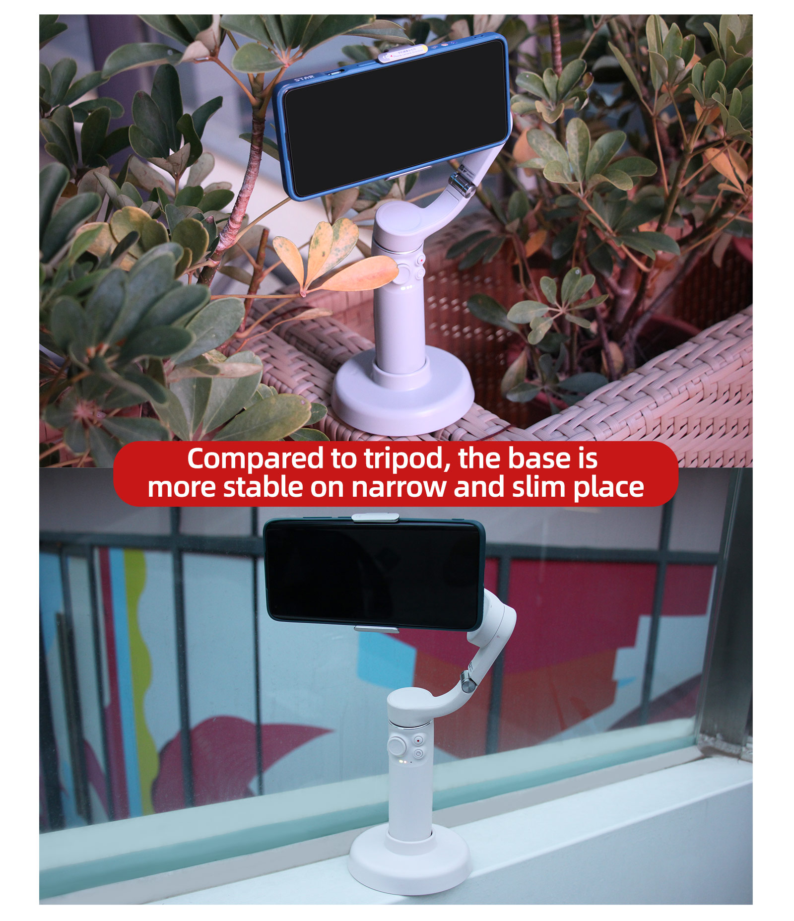 Compared with a tripod, the base for OM 5 can also be placed on a narrow and slender table.