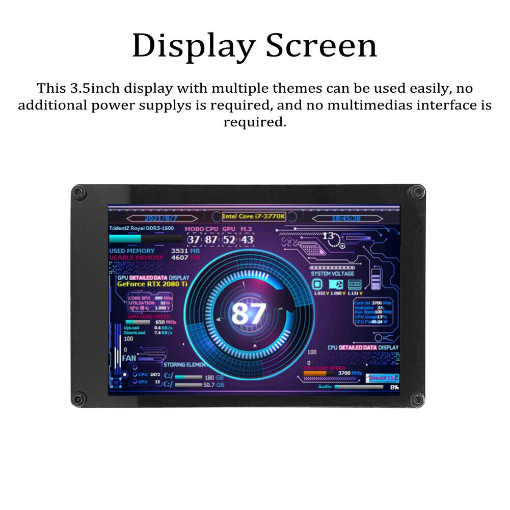 This 3.5inch display with multiple themes can be used easily, no additional power supplys is required, and no multimedias interface is required. I just need a USB data cable to use. It Support horizontal and vertical screen switching, 360 degree rotation, and is compatible with multiple systems.