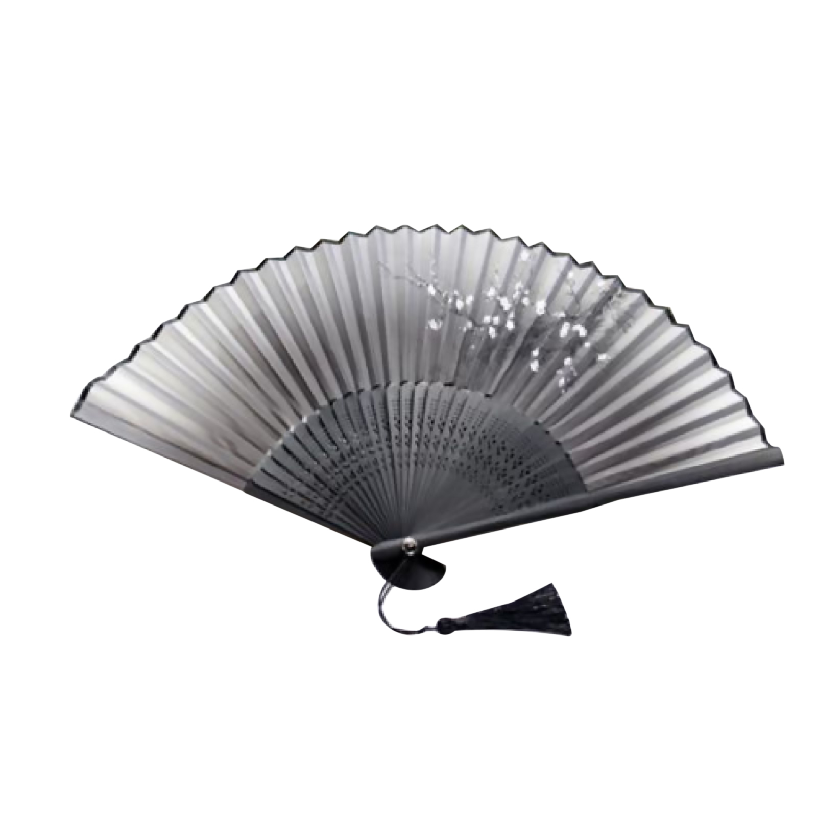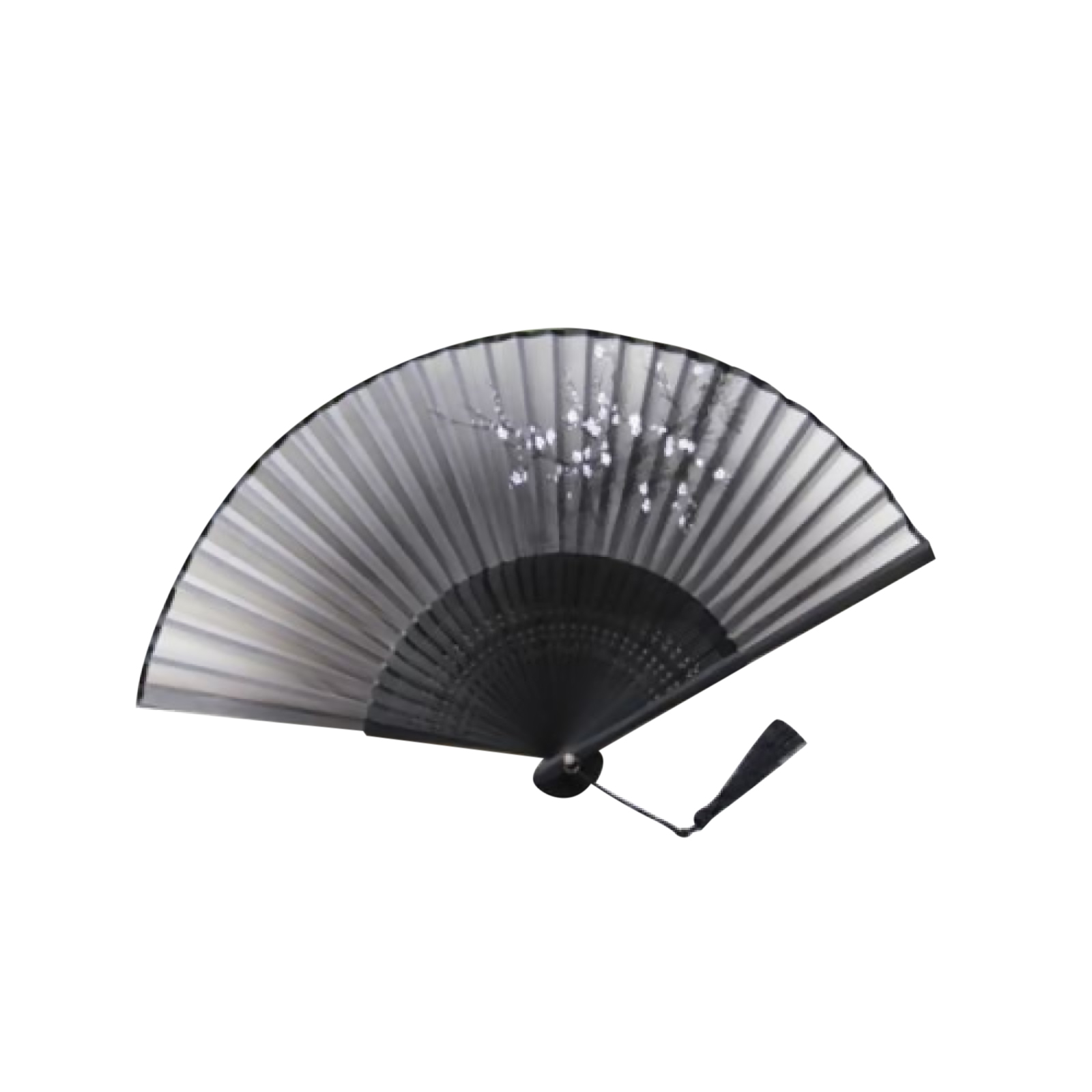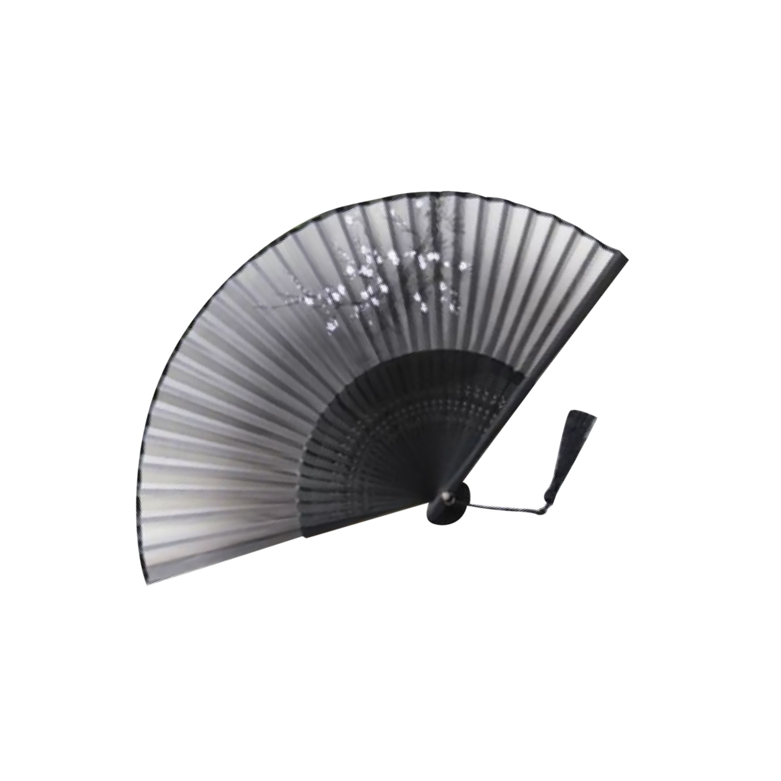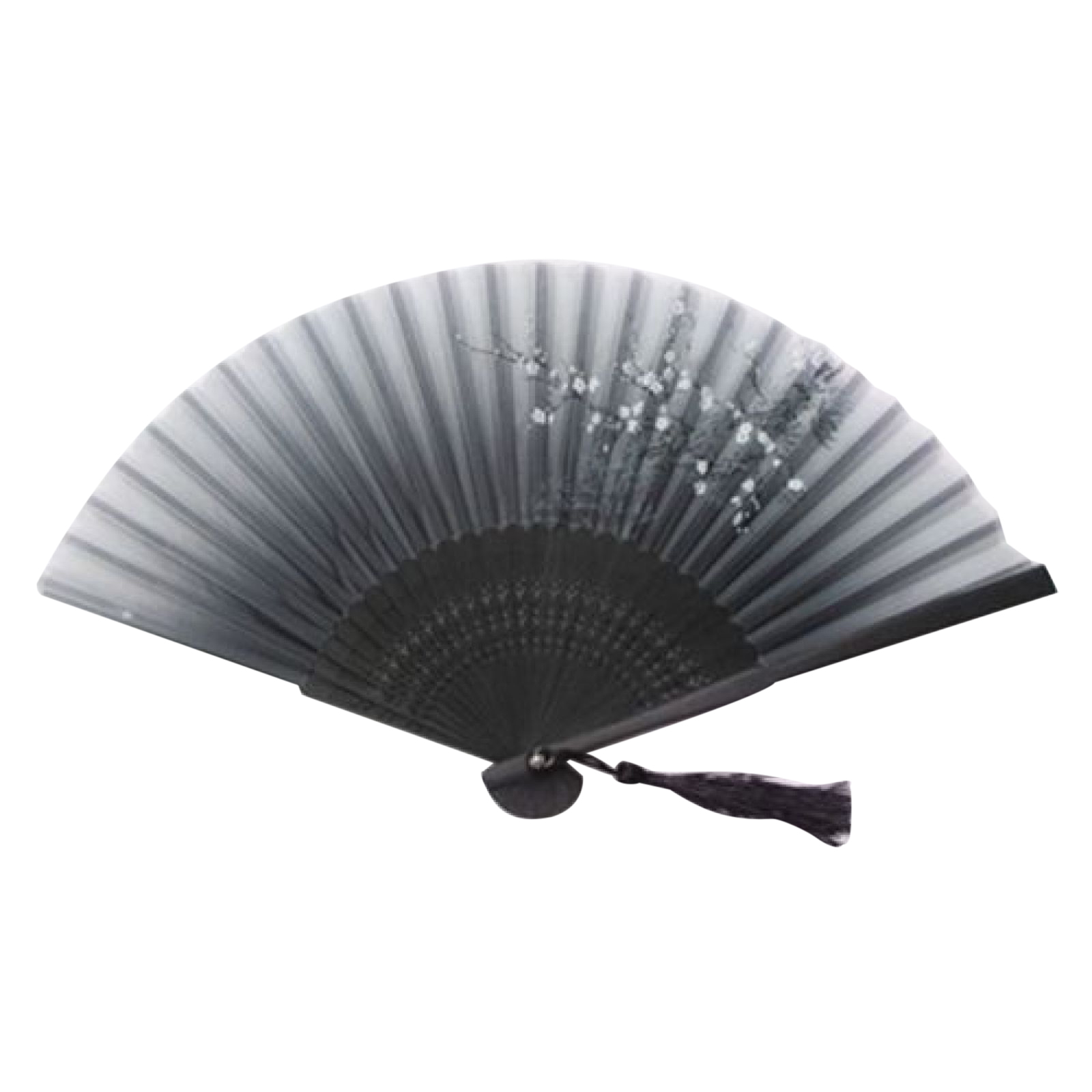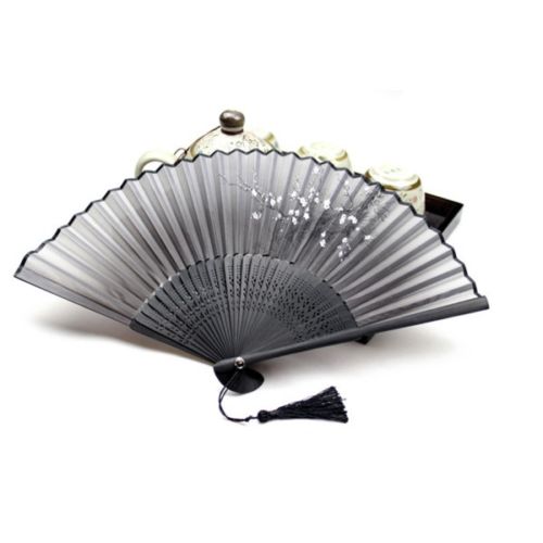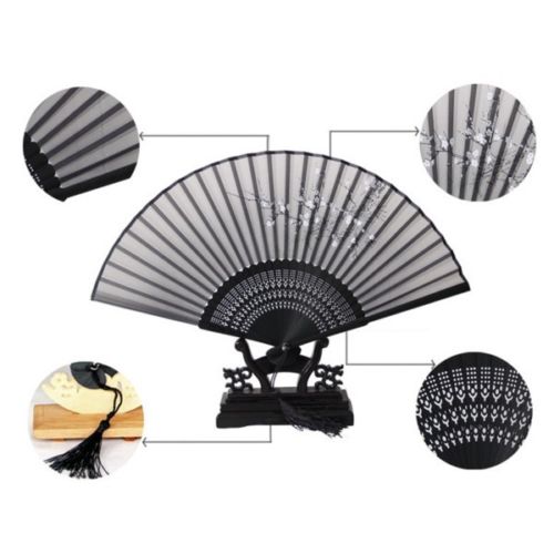 Retro Chinese Japanese Folding Black Hand Held Fan Silk Flower Bamboo Pocket Fan