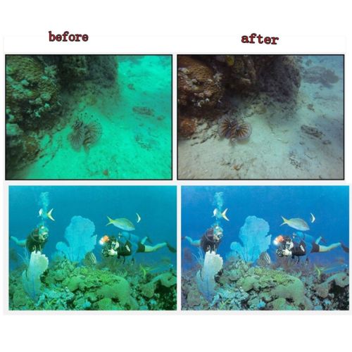 1)Red filter: use for water depth of 10-20 meters, around noon (sunlight water).