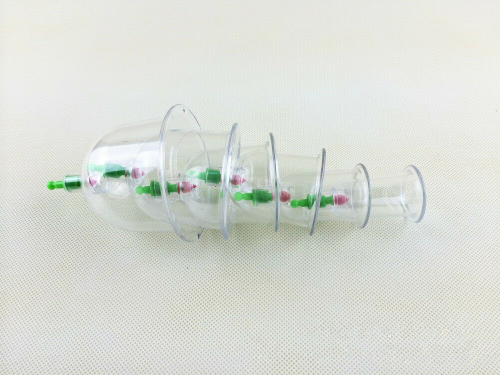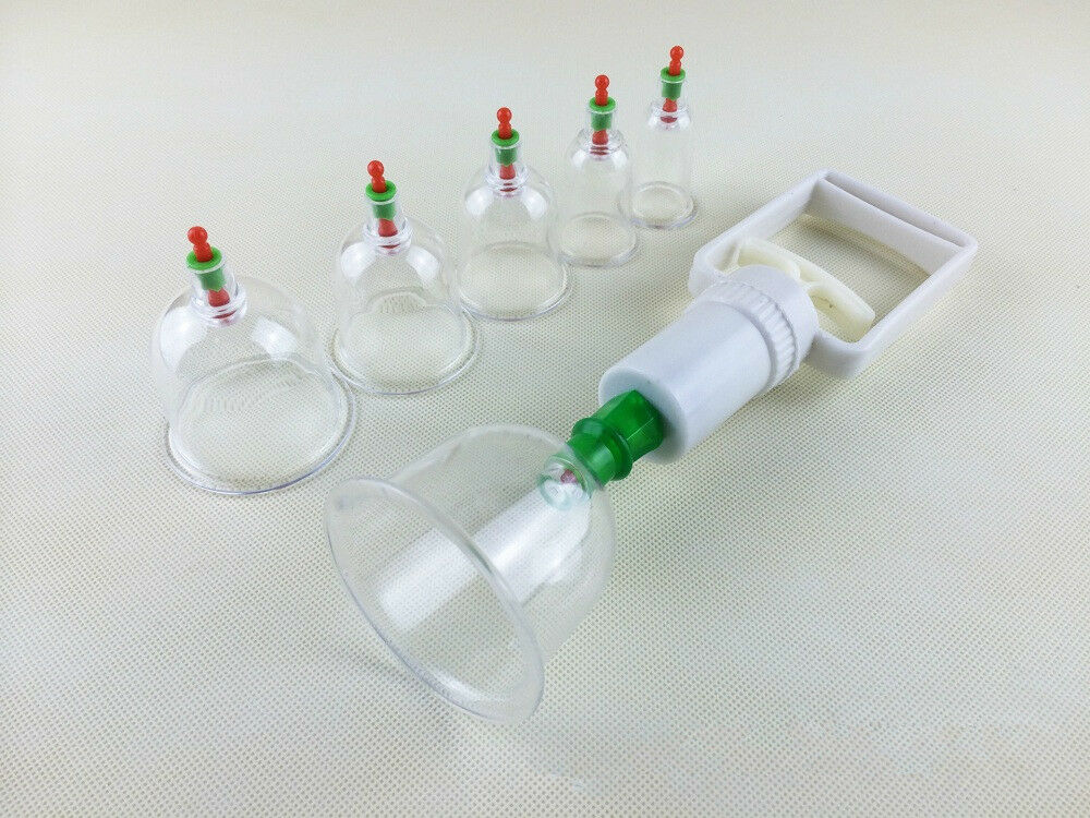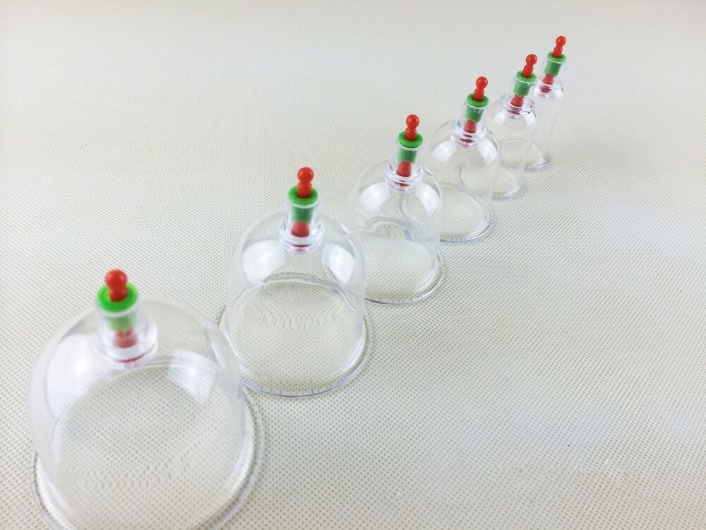 This 6 Piece Deluxe Cupping Set is a unique way to relieve sore and aching muscles or enlarge nipples via acupressure. The cupping method stems from traditional Chinese medicine, but its effects can be enjoyed in a variety of ways. Simply place one or more cups directly onto the skin, attach the hand pump (included) to the top opening of the cup. Lubricate the skin first in order to slide the cups around for different sensations. The pump may be detached and the cups will still remain attaching on the skin by the vacuum. Acu-Points centered within the cups provide addtional stimulation against the skin and can be moved to difference cups as required.