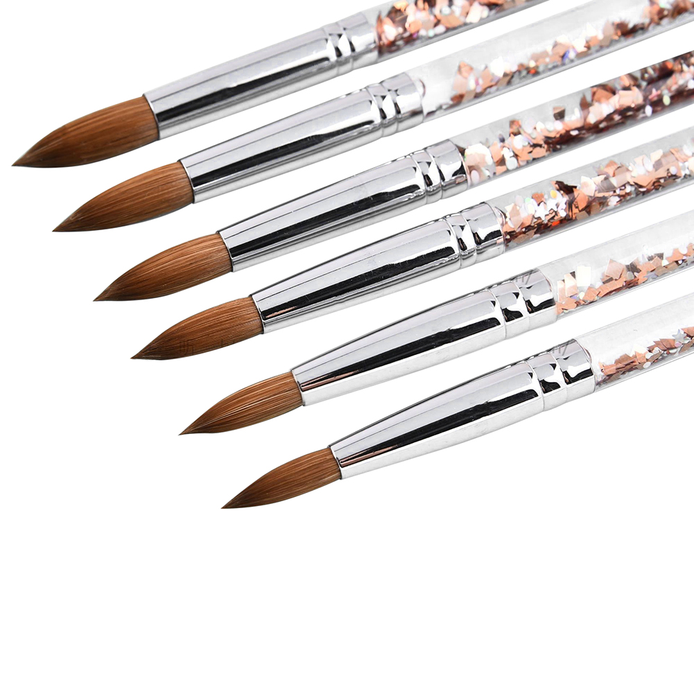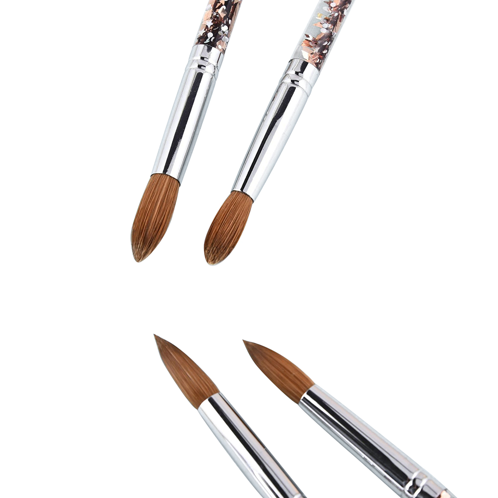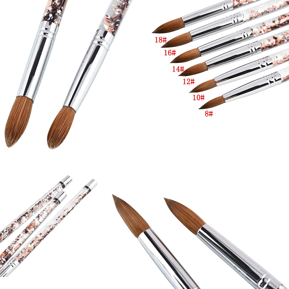 Brushes are made from the finest kolinsky hair. Brush hairs are strong enough to push and shape the acrylic but flexible and soft to give finishing touches.