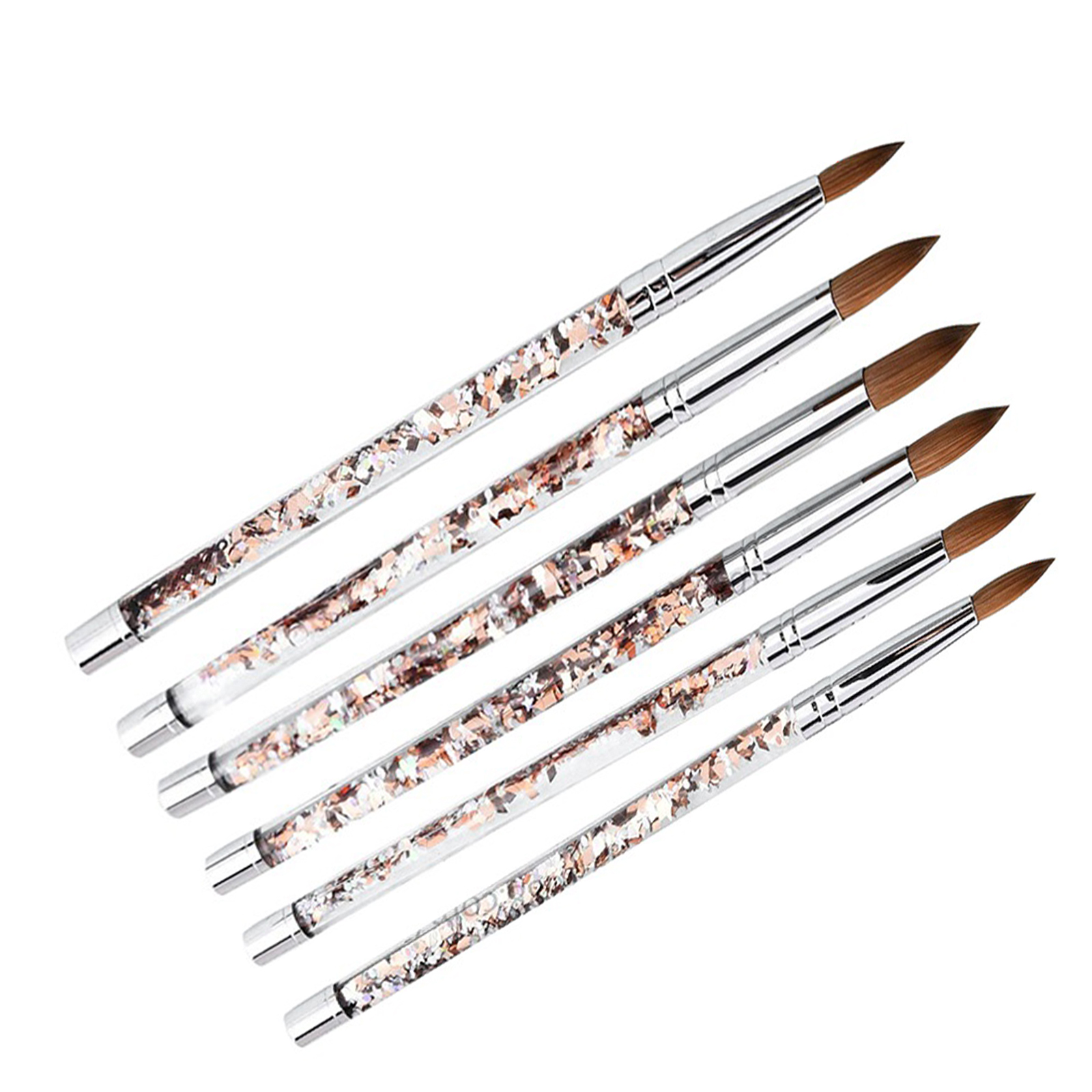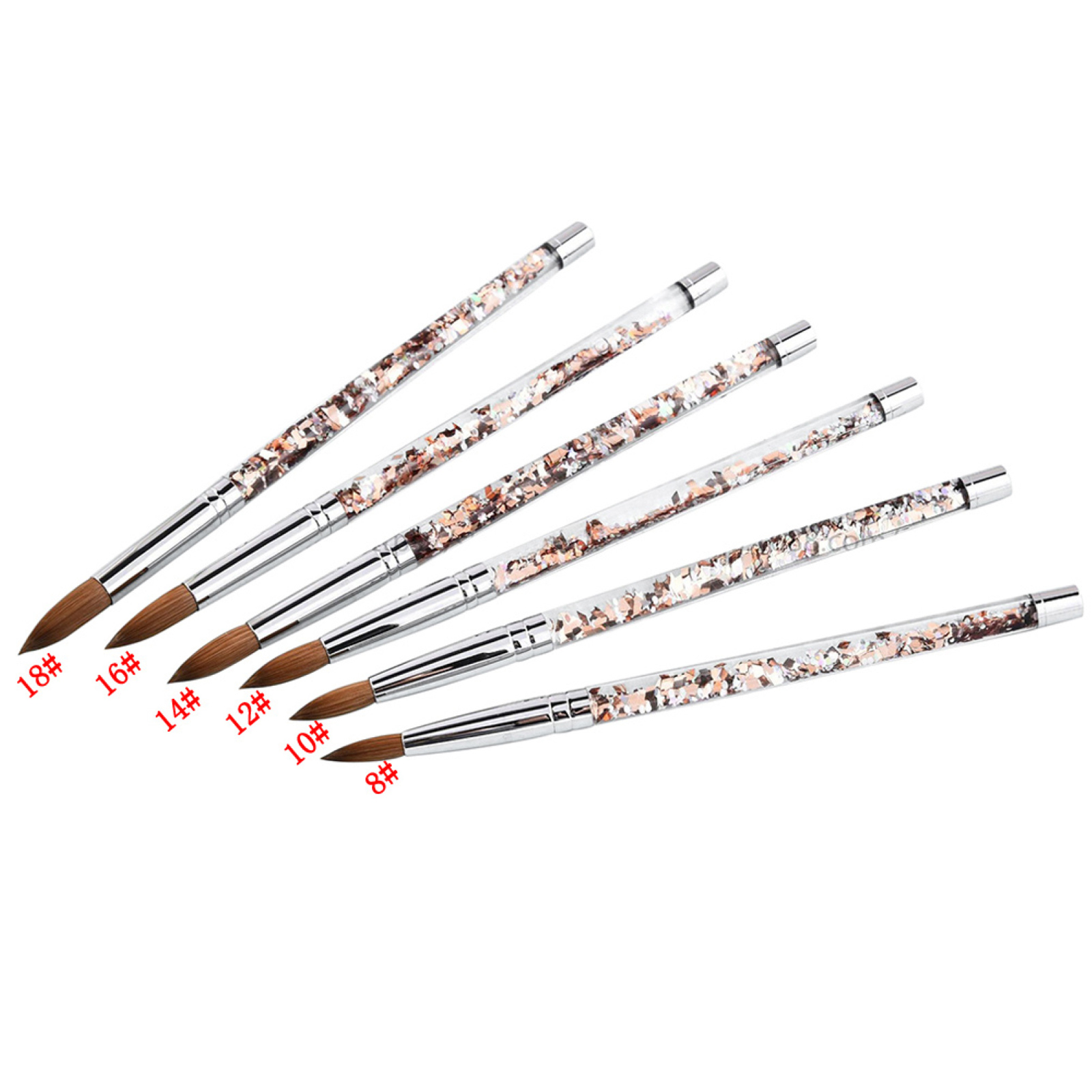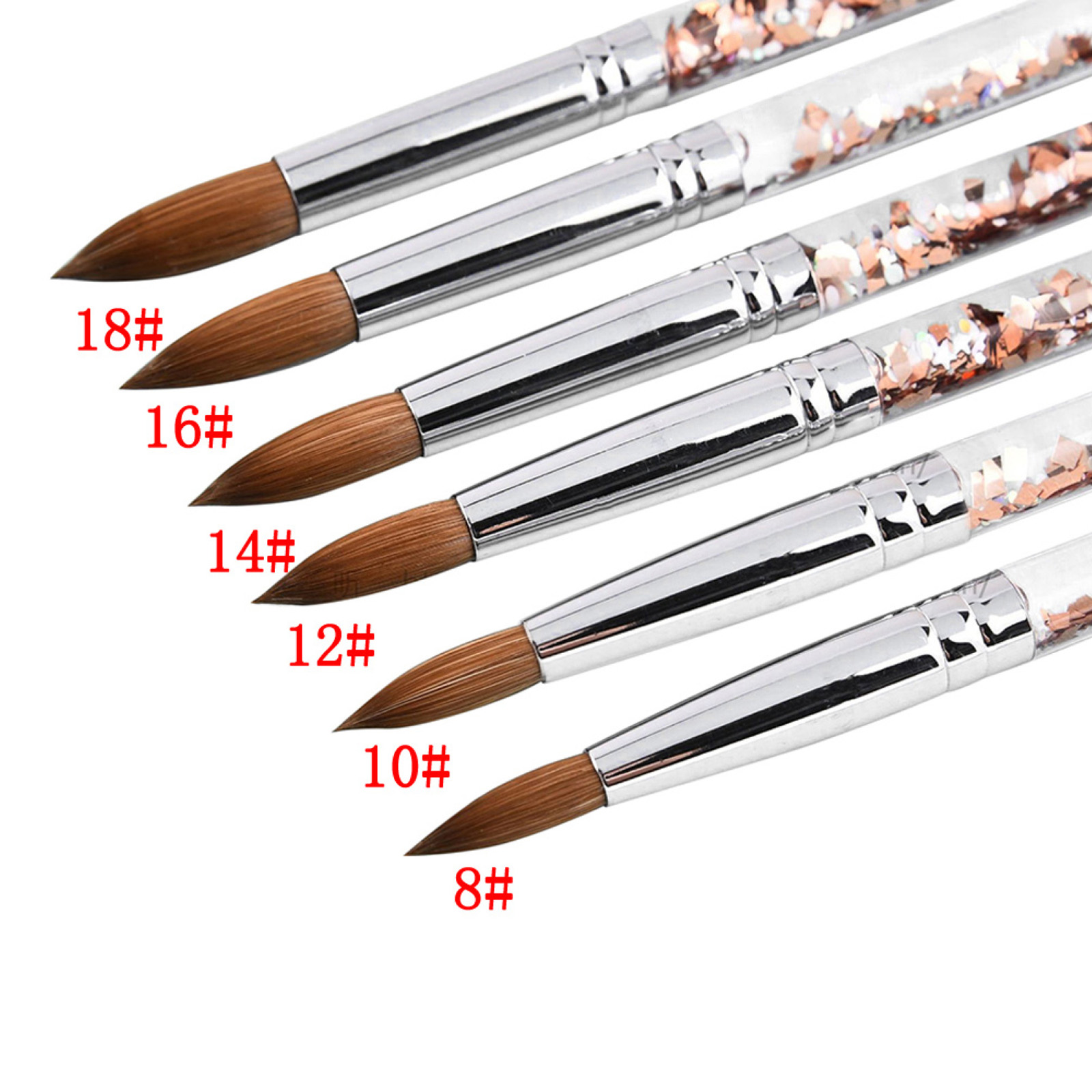 Brushes are made from the finest kolinsky hair. Brush hairs are strong enough to push and shape the acrylic but flexible and soft to give finishing touches.