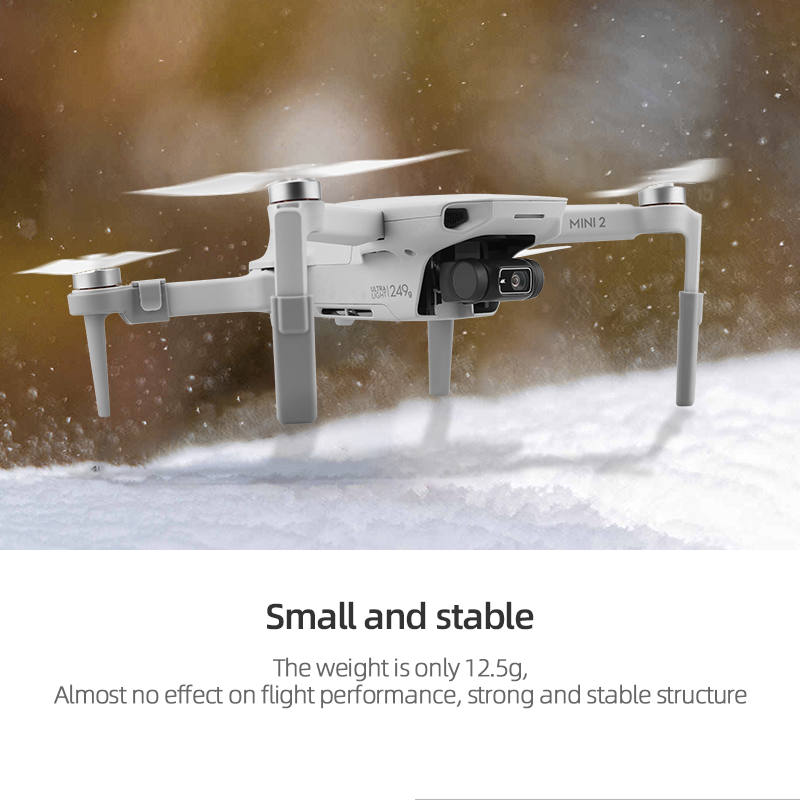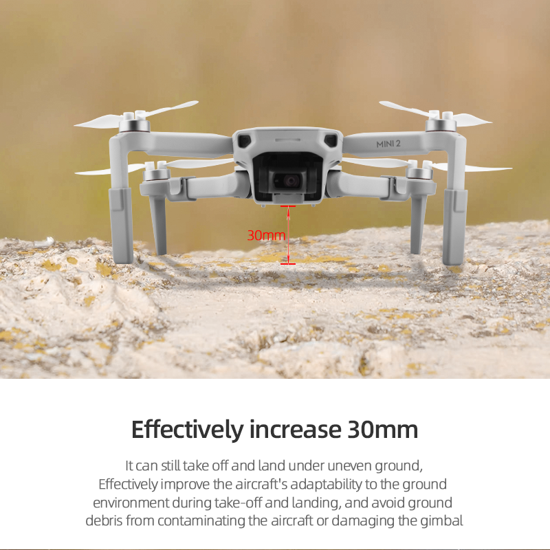 3. Effectively increase the height by 30mm, and it can still take off and land under the uneven ground environment, effectively improving the aircraft's adaptability to the ground environment during takeoff and landing, and avoiding ground debris from soiling the aircraft or damaging the gimbal.