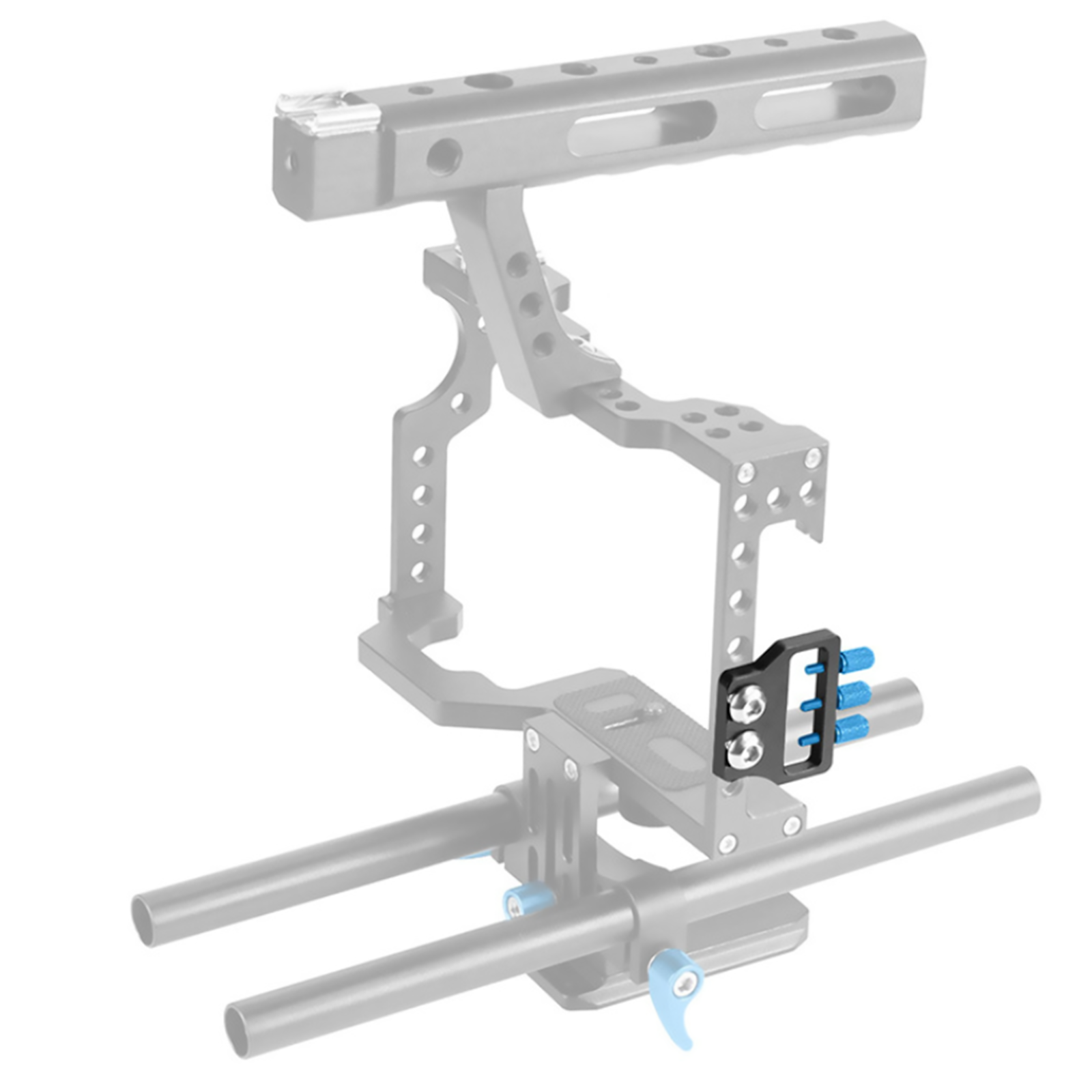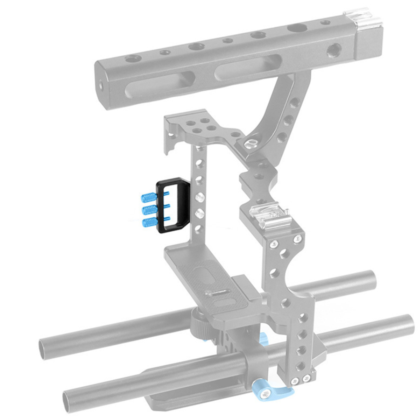 3. Universal 1/4 inch screw locking, strong universality, through 1/4 inch screw connected to camera cage or quick release plate.